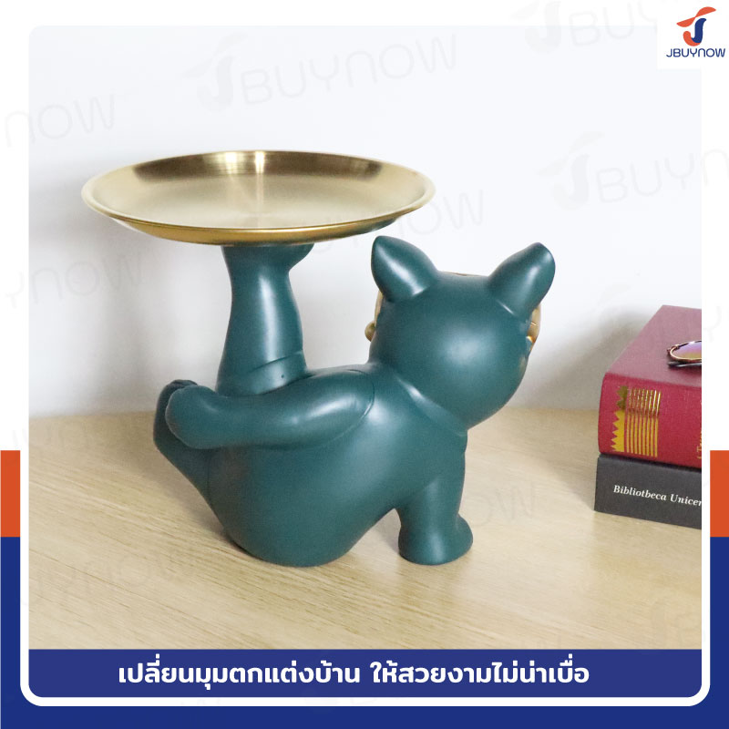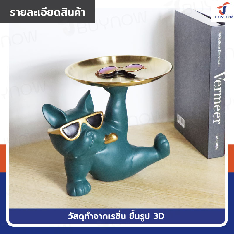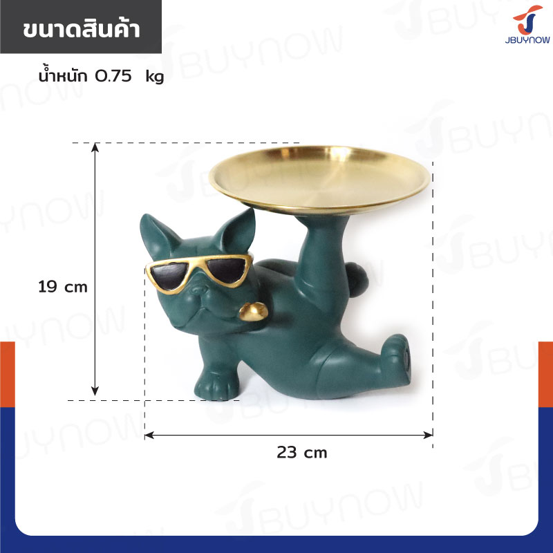 รูปปั้นเรซิ่น บลูด็อก 17x23x19 ซม. มีถาดวางของ รุ่น 2949 สีเขียว
