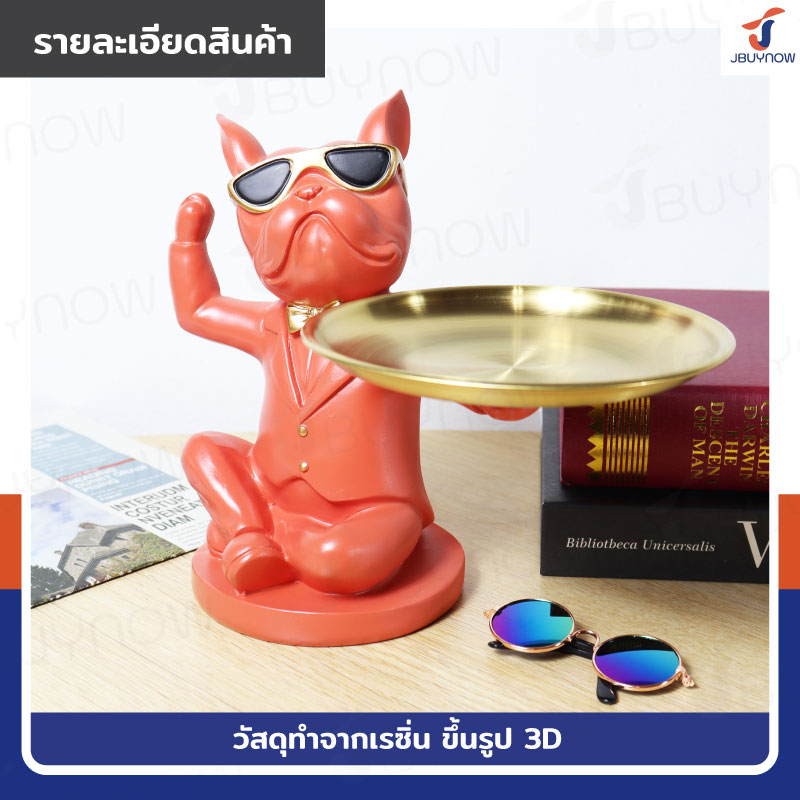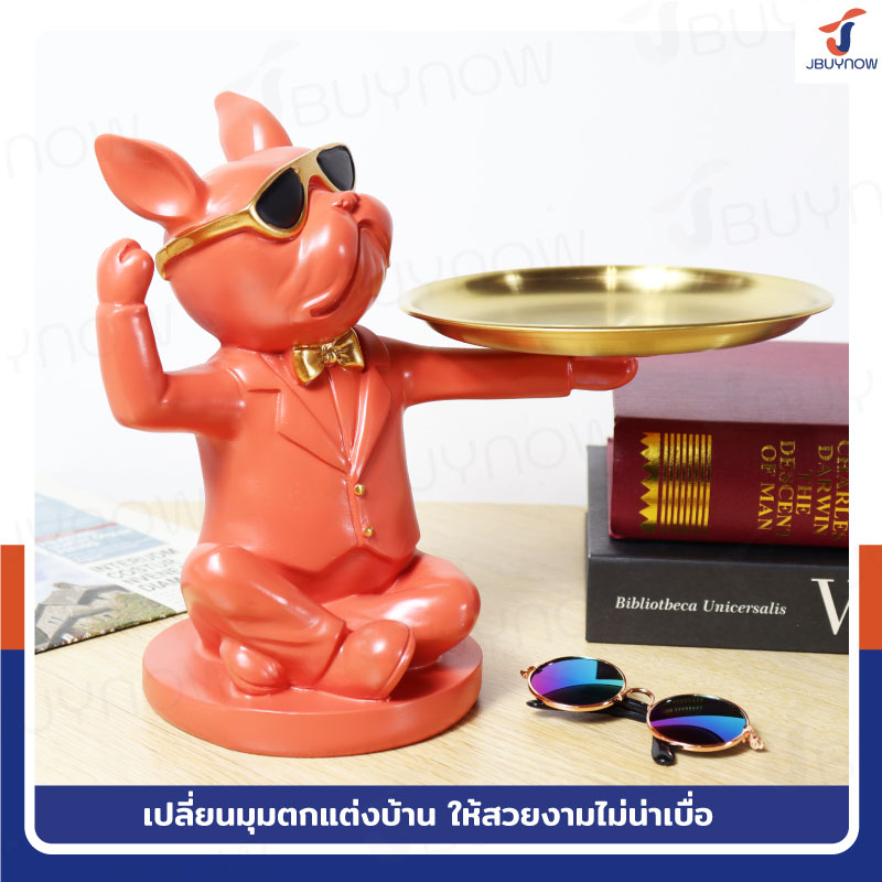 รูปปั้นเรซิ่น บลูด็อก 17x24x19 ถาดวางของ รุ่น 2951 สีส้ม