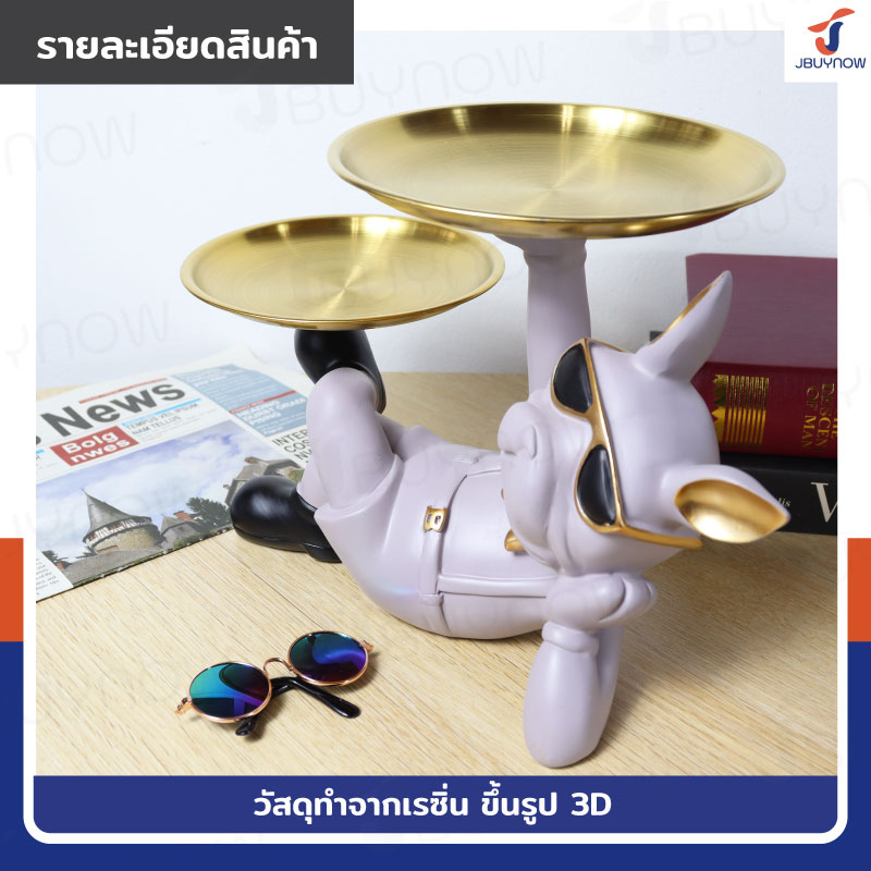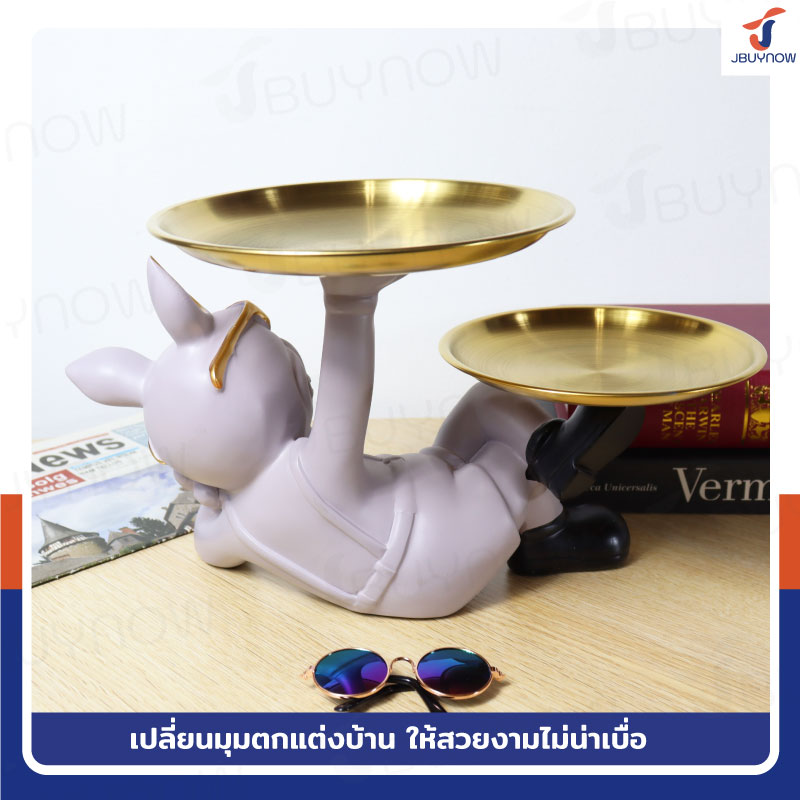 รูปปั้นเรซิ่น บลูด็อก 17x33x18 ถาดวางของ รุ่น 2953 สีเทา