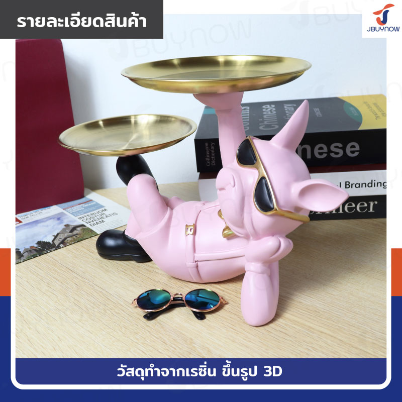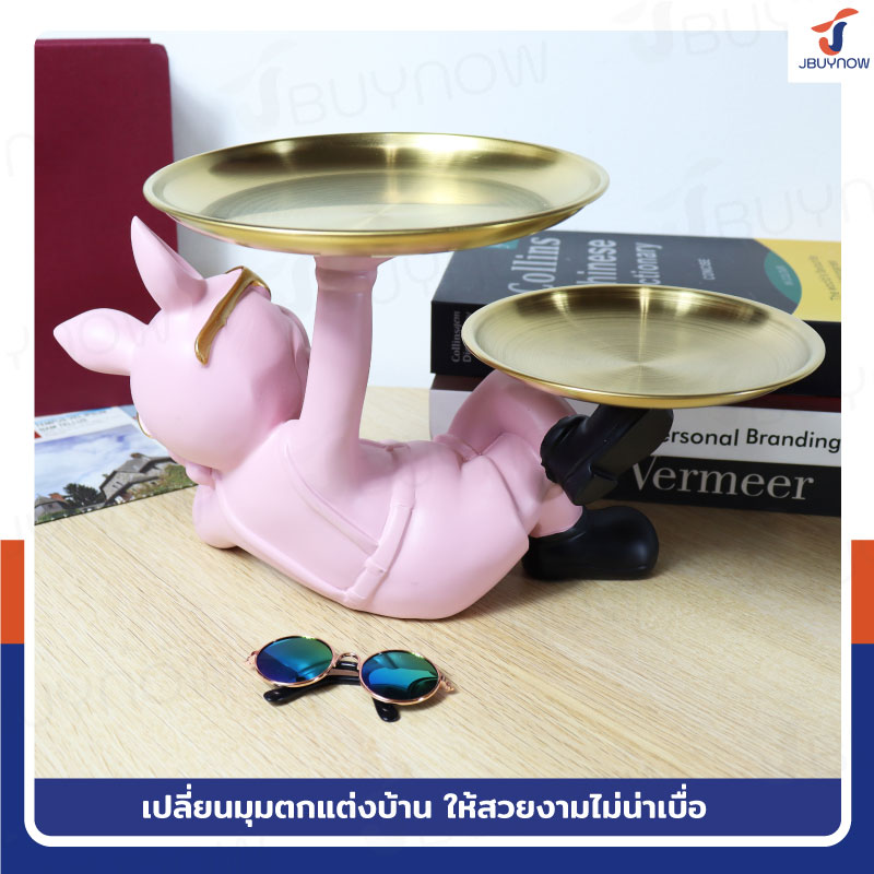รูปปั้นเรซิ่น บลูด็อก 17x33x18 ถาดวางของ รุ่น 2953 สีชมพู