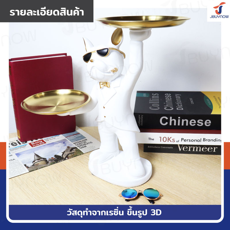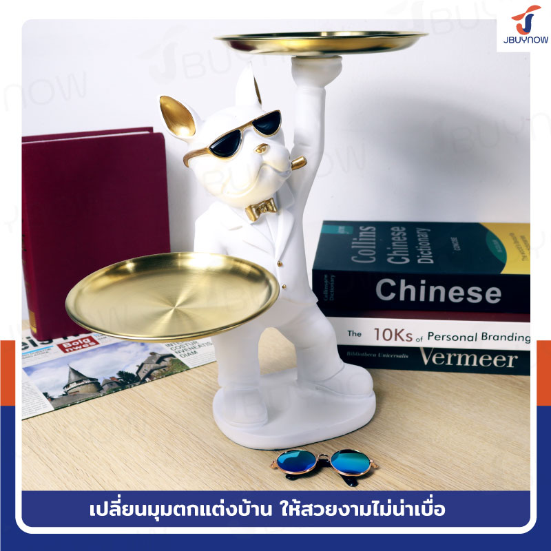 รูปปั้นเรซิ่น บลูด็อก 17x32x32 ถาดวางของ รุ่น 4090 สีขาว