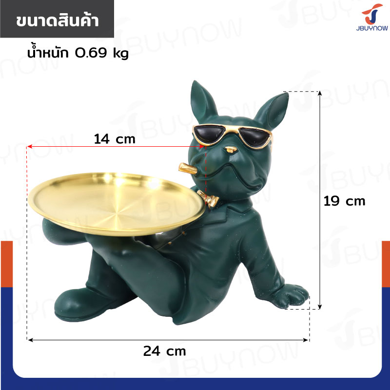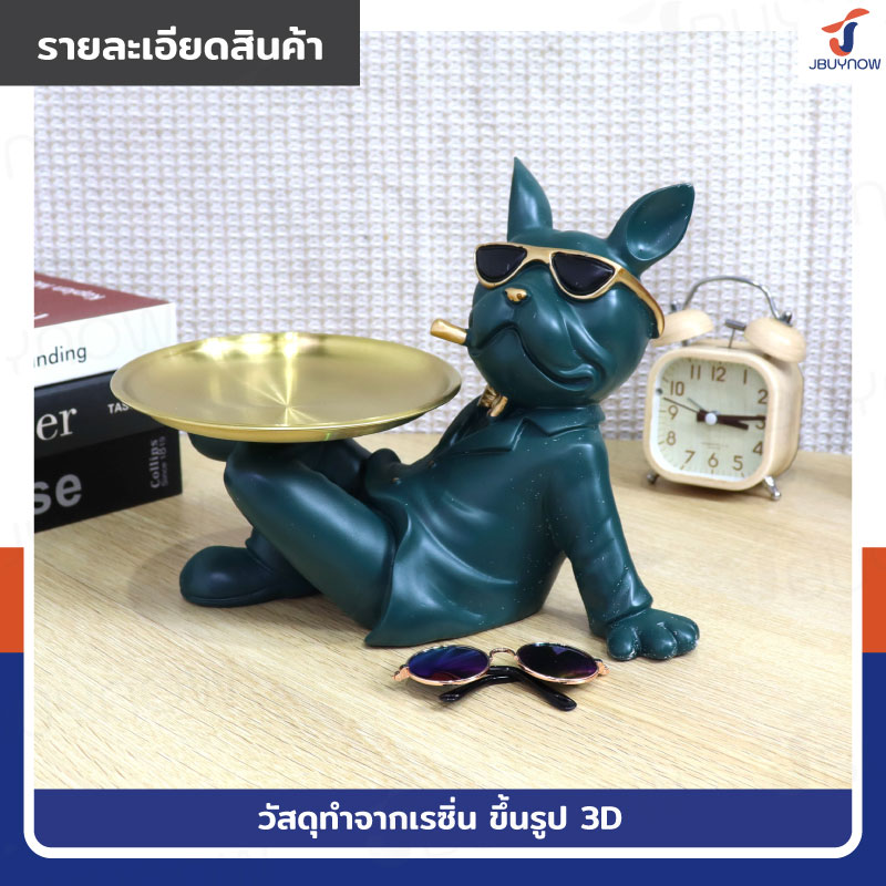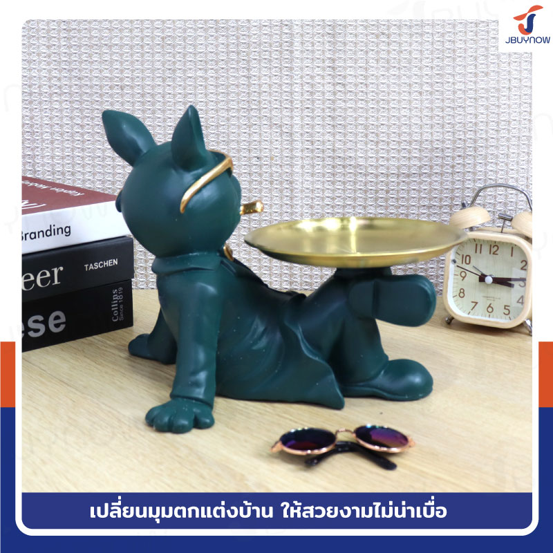 รูปปั้นเรซิ่น บลูด็อก 14x24x19 ซม. มีถาดวางของ รุ่น 4092 สีเขียว