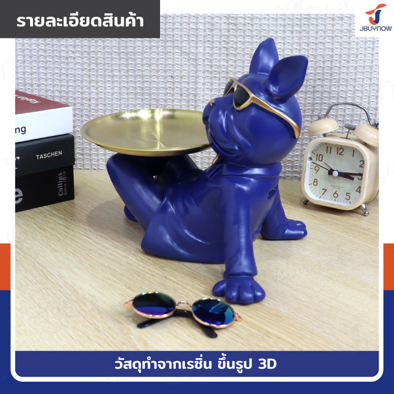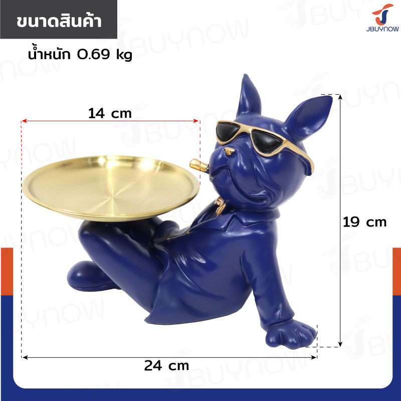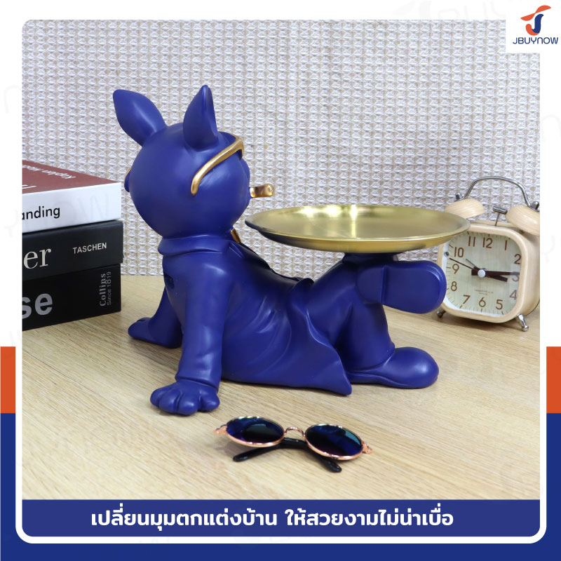 รูปปั้นเรซิ่น บลูด็อก 14x24x19 ซม. มีถาดวางของ รุ่น 4092 สีน้ำเงิน