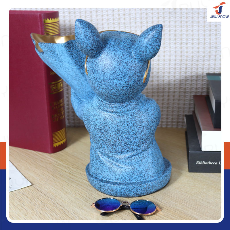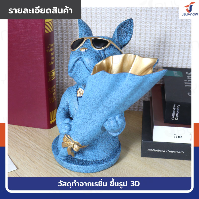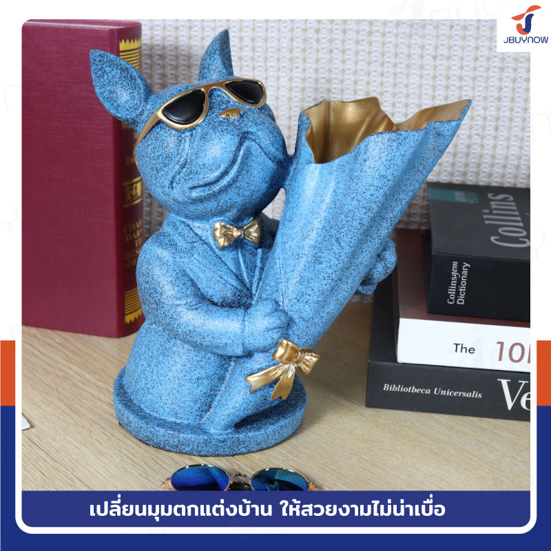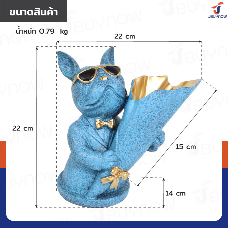 รูปปั้นเรซิ่น บลูด็อก 14x22x22 ซม. ถือช่อดอกไม้ รุ่น 4093 สีน้ำเงิน