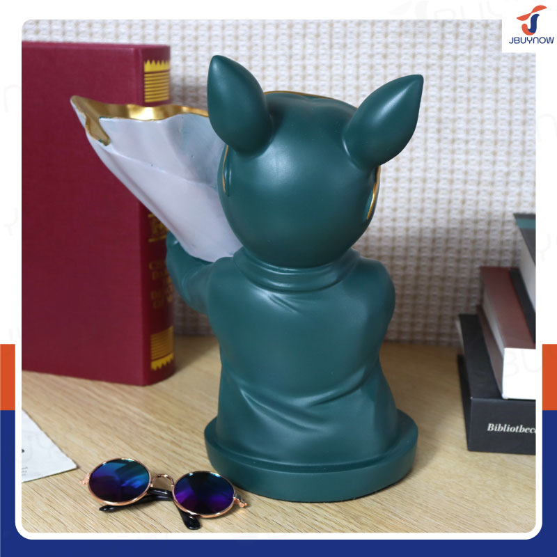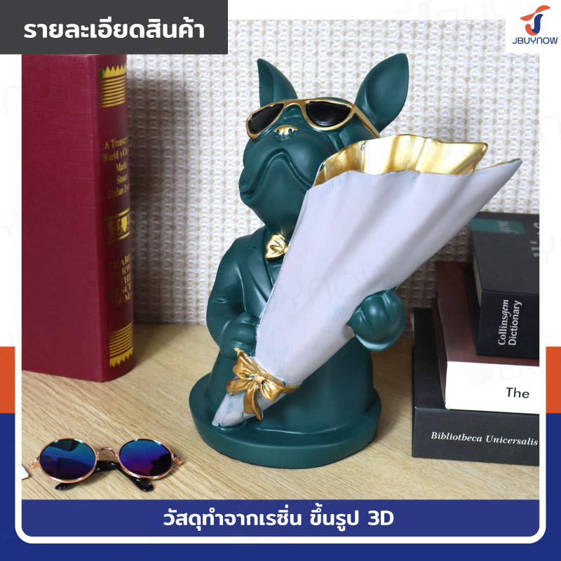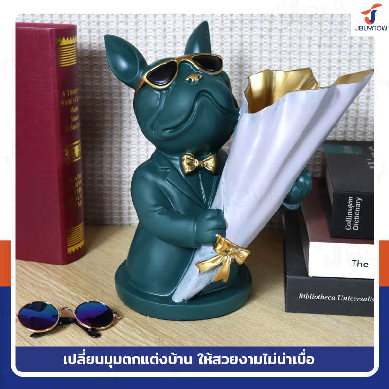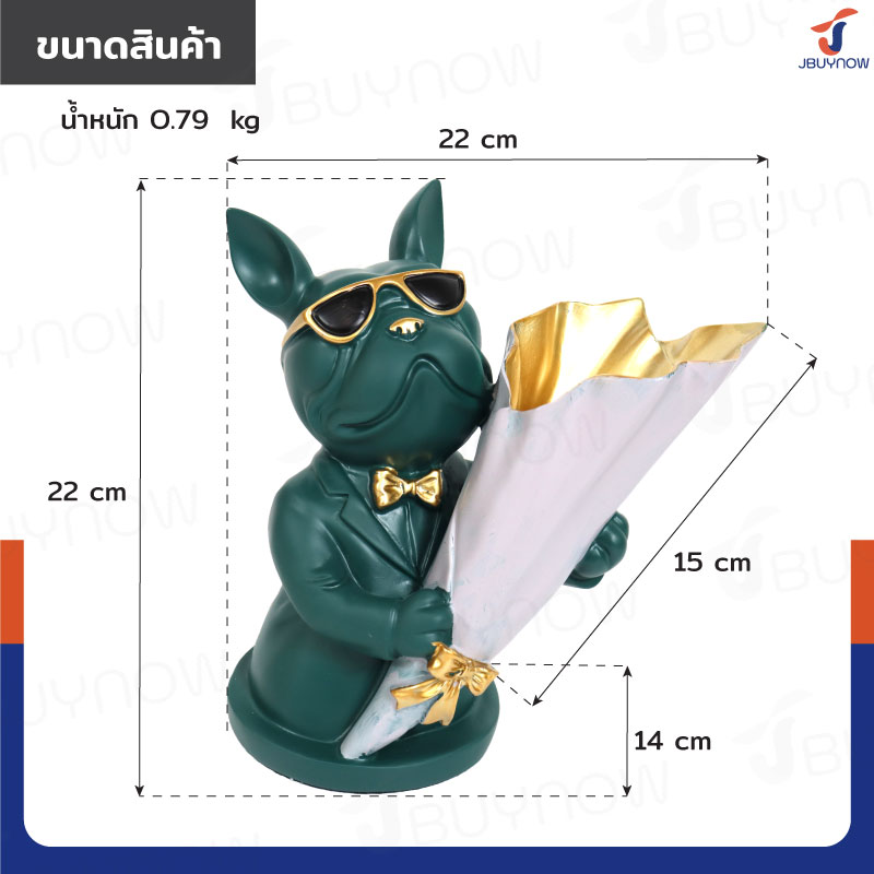 รูปปั้นเรซิ่น บลูด็อก 14x22x22 ซม. ถือช่อดอกไม้ รุ่น 4093 สีเขียว