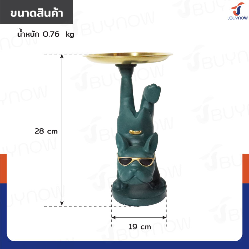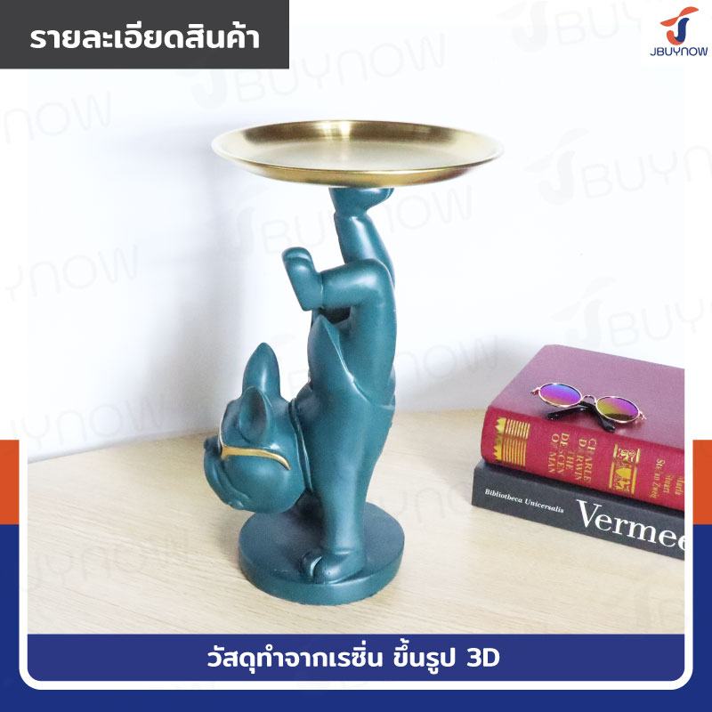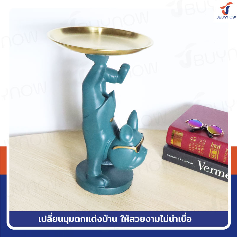 รูปปั้นเรซิ่น บลูด็อก 17x19x28 ซม. มีถาดวางของ รุ่น 4094 สีเขียว