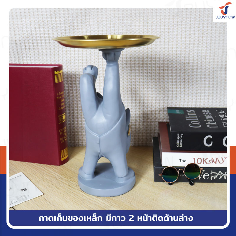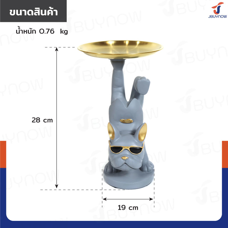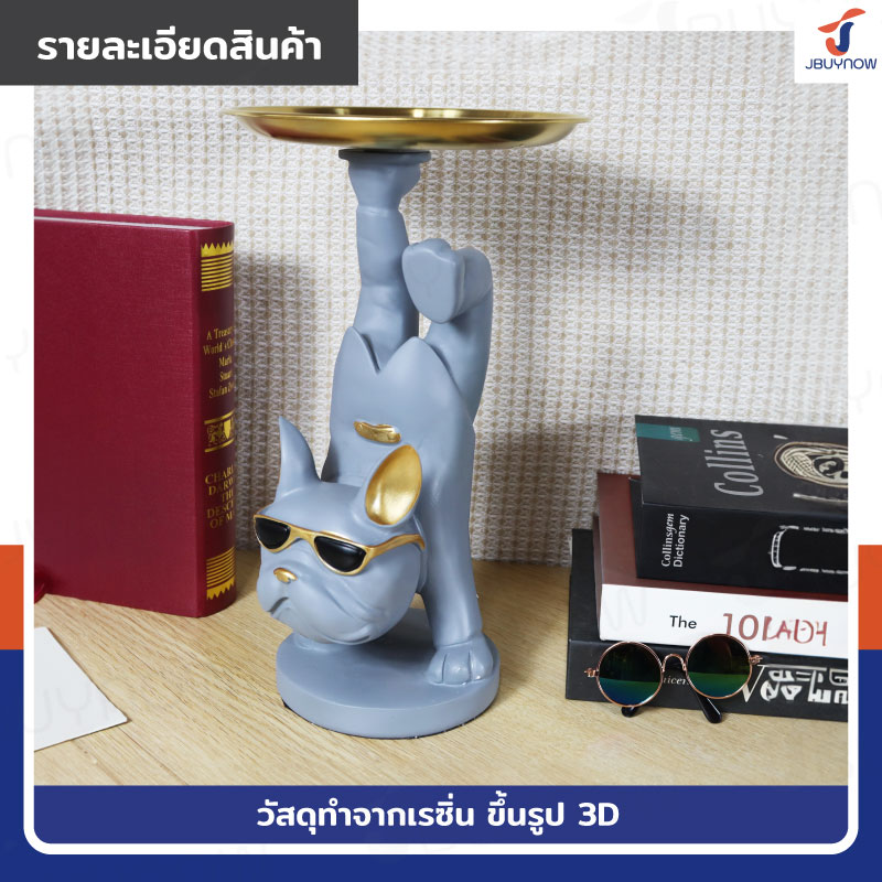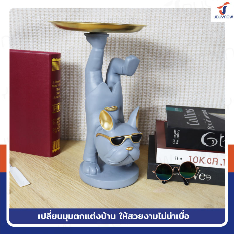 รูปปั้นเรซิ่น บลูด็อก 17x19x28 ซม. มีถาดวางของ รุ่น 4094 สีเทา