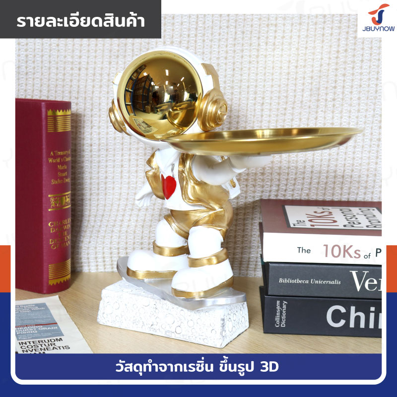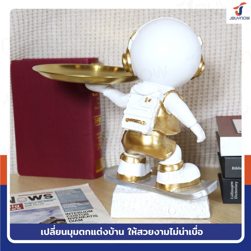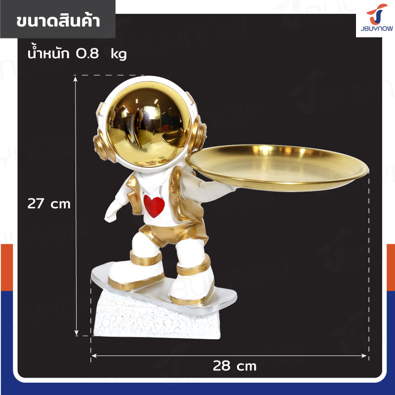 รูปปั้นเรซิ่น นักบินอวกาศ 17x28x27 ซม. มีถาดวางของ รุ่น SK220001 สีขาว