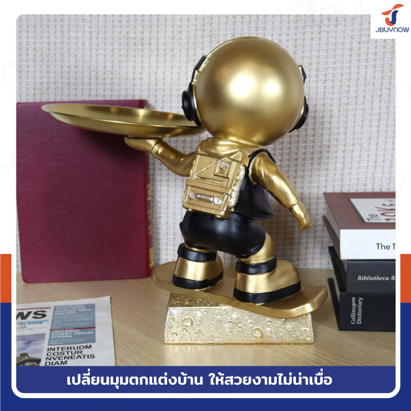 รูปปั้นเรซิ่น นักบินอวกาศ 17x28x27 ซม. มีถาดวางของ รุ่น SK220001 สีทองเข้ม