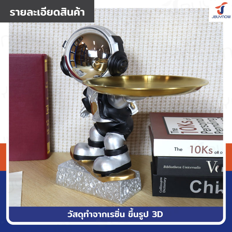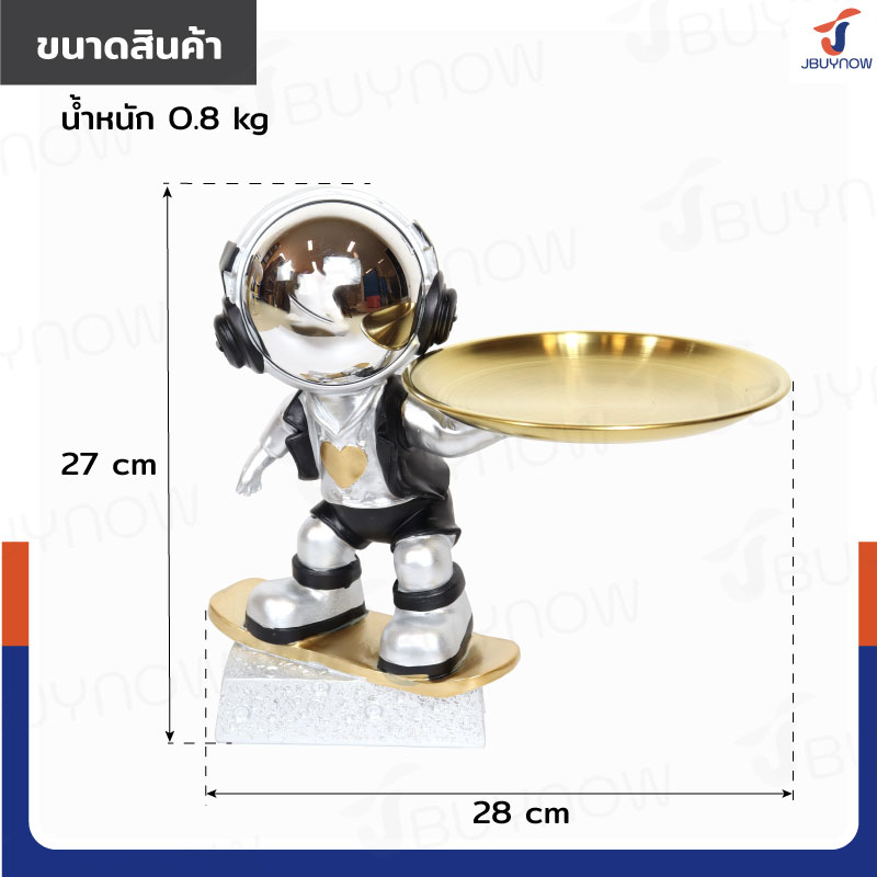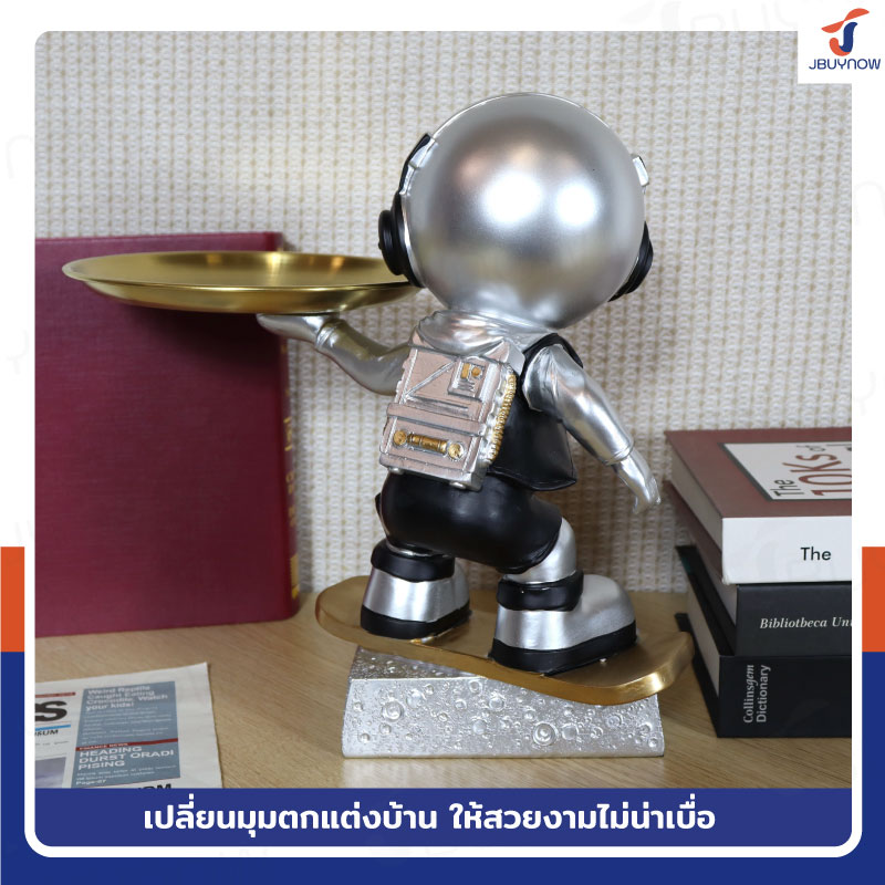 รูปปั้นเรซิ่น นักบินอวกาศ 17x28x27 ซม. มีถาดวางของ รุ่น SK220001 สีเงิน