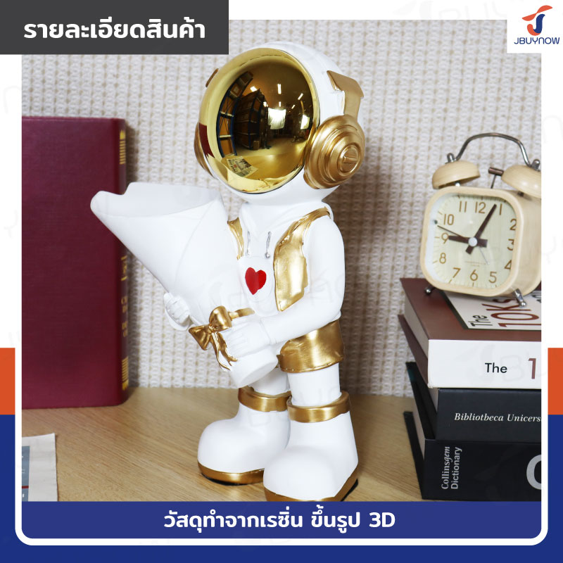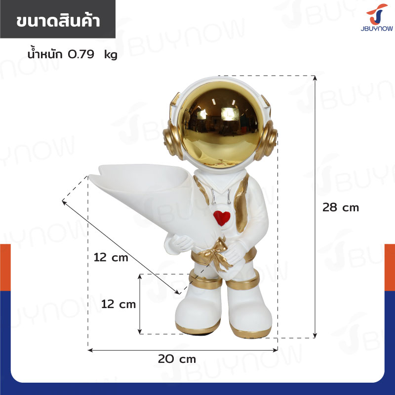 รูปปั้นเรซิ่น นักบินอวกาศ 12x20x28 ซม. ถือช่อดอกไม้ รุ่น SK220002 สีขาว