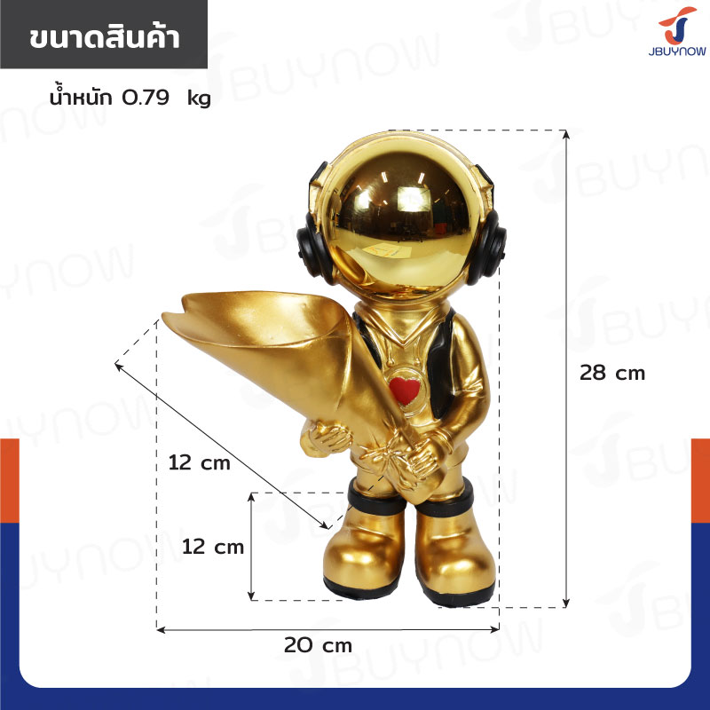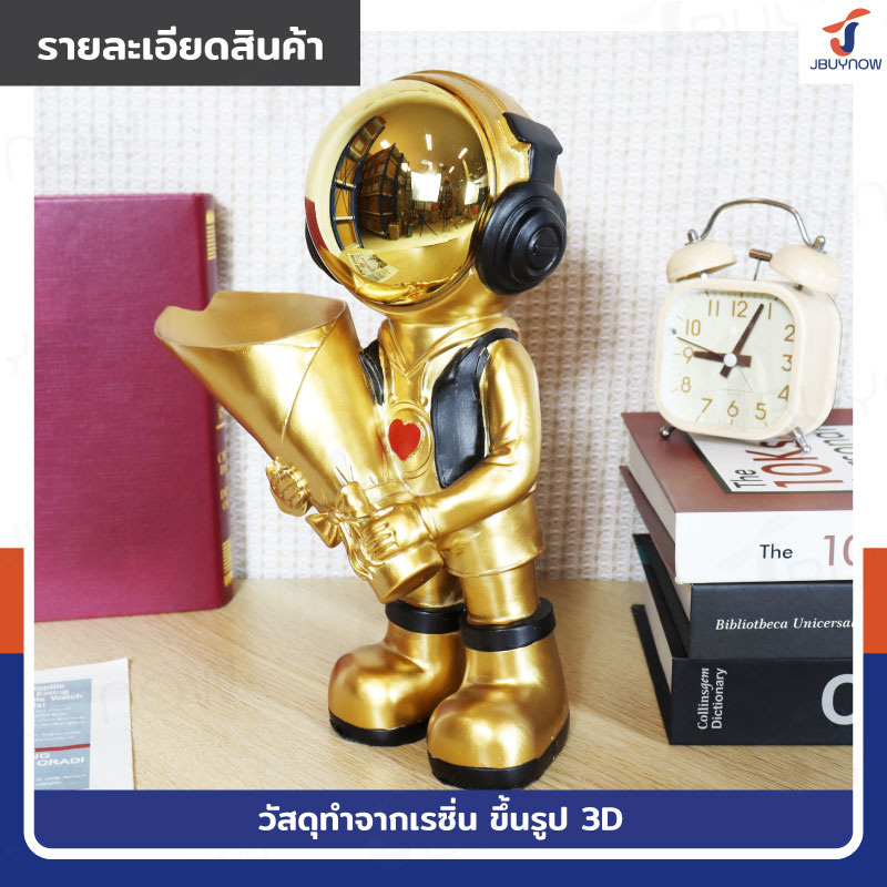 รูปปั้นเรซิ่น นักบินอวกาศ 12x20x28 ซม. ถือช้อดอกไม้ รุ่น SK220002 สีทอง