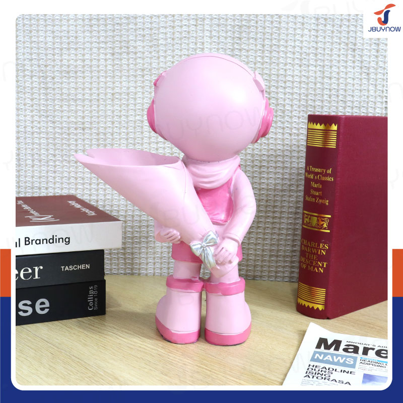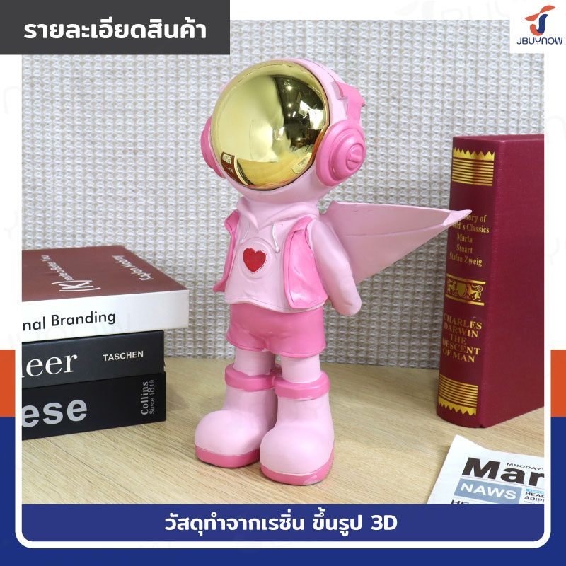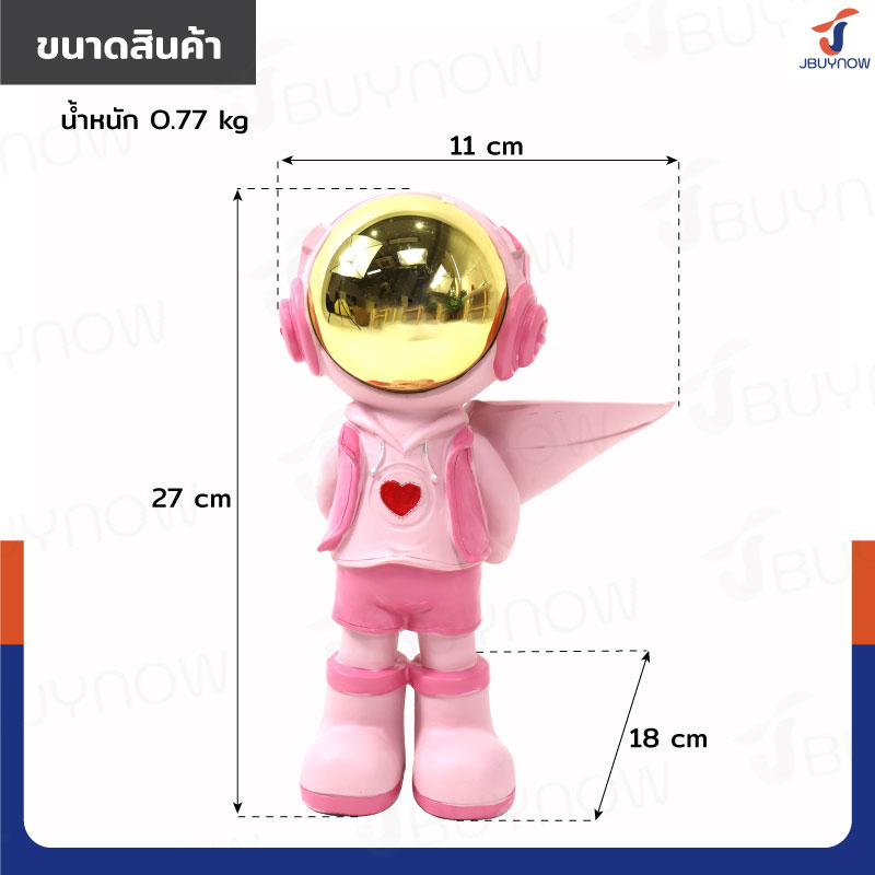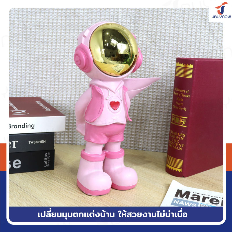 รูปปั้นเรซิ่น นักบินอวกาศ 11x18x27 ซม. ซ่อนช่อดอกไม้ รุ่น SK220003 สีชมพู