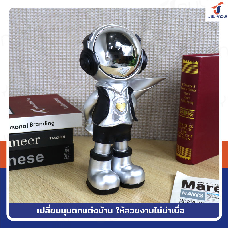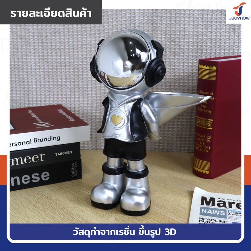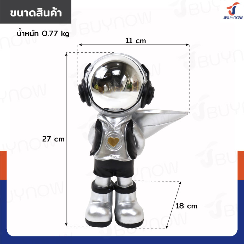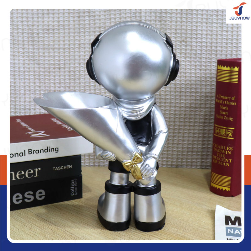 รูปปั้นเรซิ่น นักบินอวกาศ 11x18x27 ซม. ซ่อนช่อดอกไม้ รุ่น SK220003 สีเงิน
