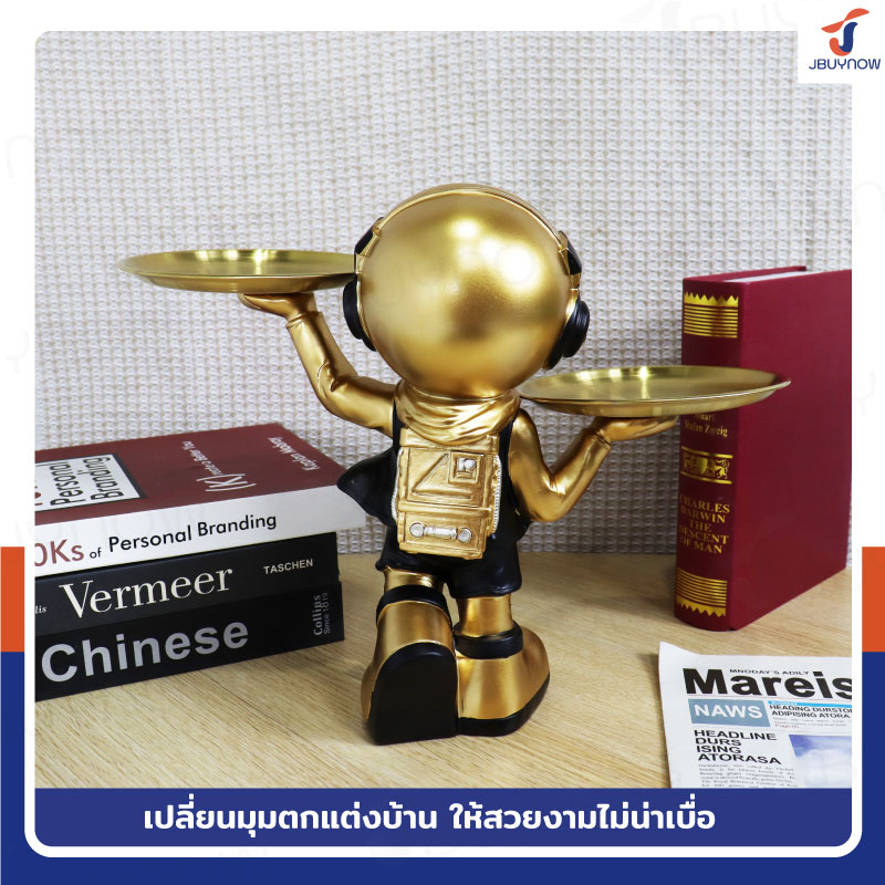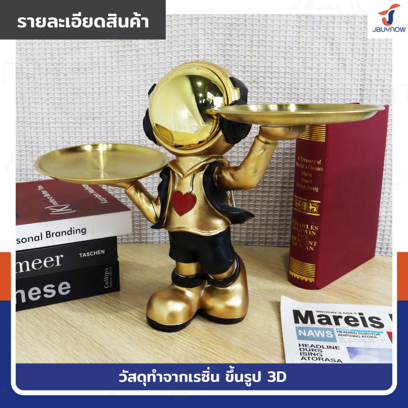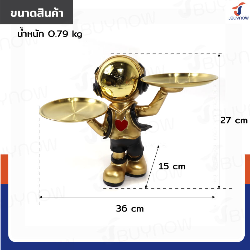 รูปปั้นเรซิ่น นักบินอวกาศ 15x36x27 ซม. มีถาดใส่ของ 2 ใบ รุ่น SK220004 สีทอง