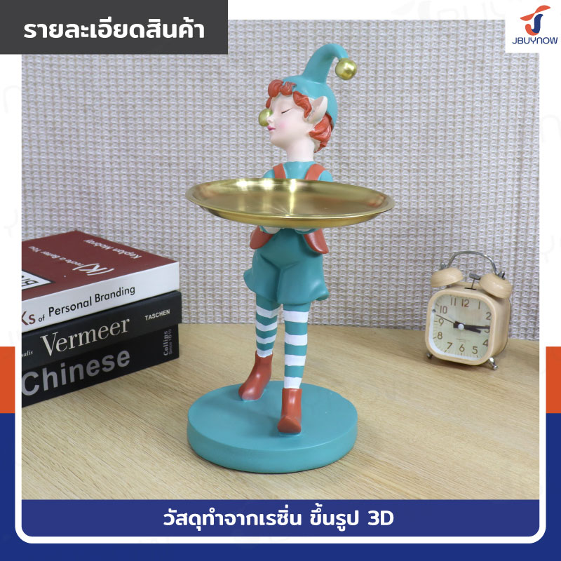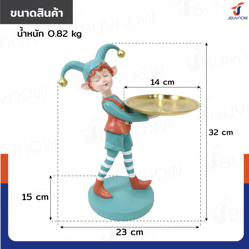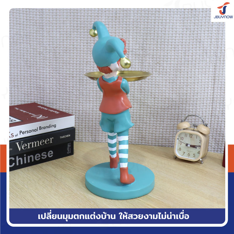รูปปั้นเรซิ่น เด็ก 15x23x32 ซม. มีถาดวาง รุ่น 2664 สีเขียว