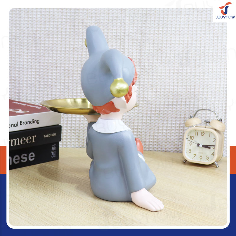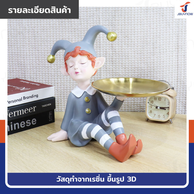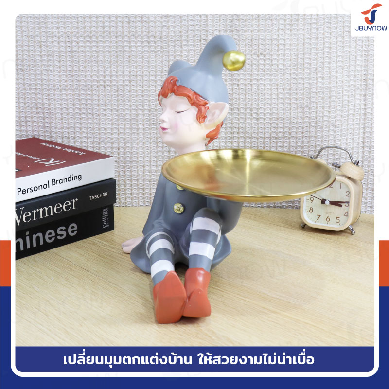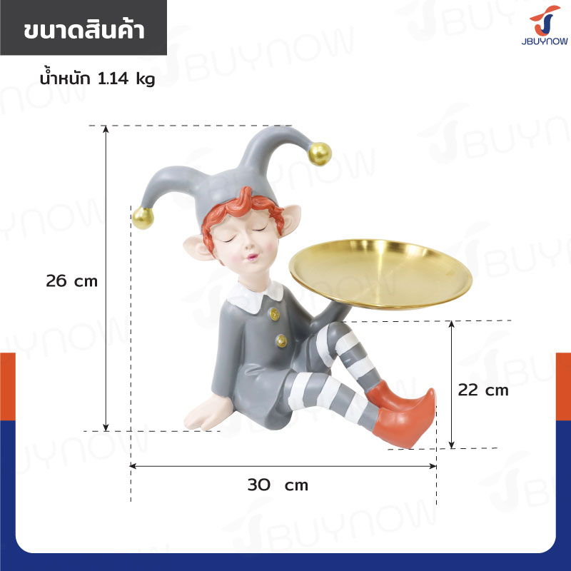 รูปปั้นเรซิ่น เด็ก 22x30x26 ซม. มีถาดวาง รุ่น 2667 สีเทา