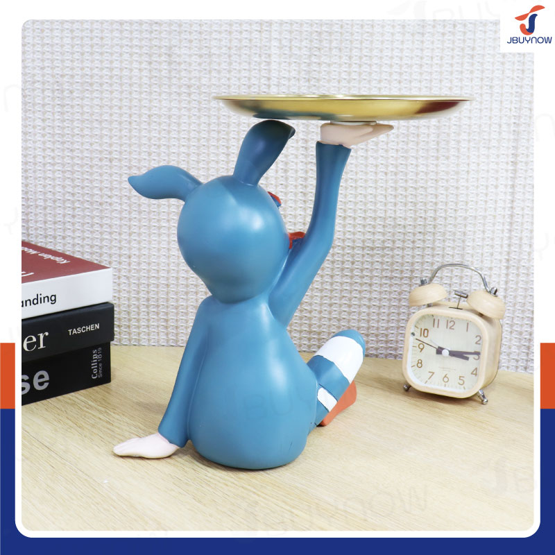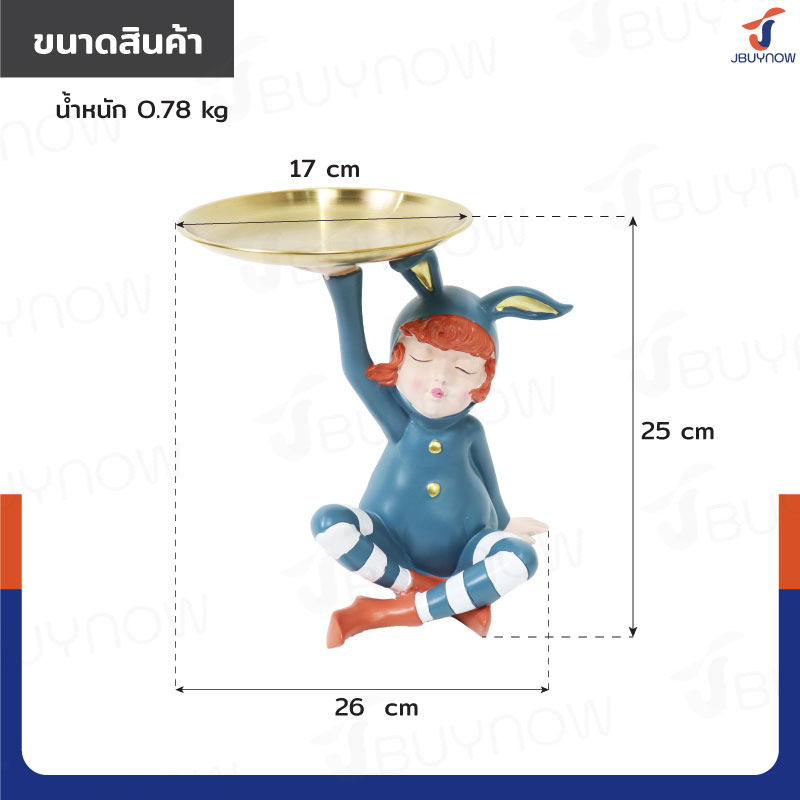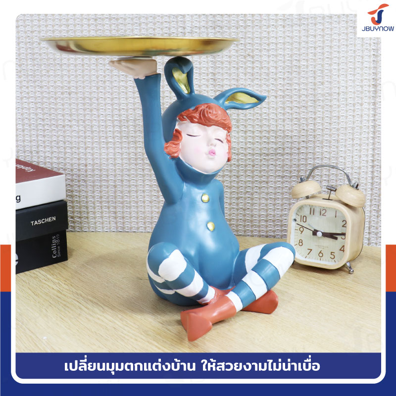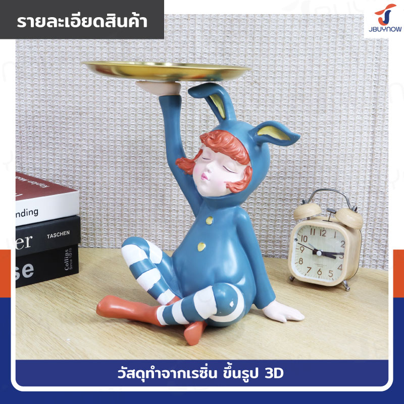 รูปปั้นเรซิ่น เด็กน้อยชุดกระต่าย 17x26x25 ซม. มีถาดวาง รุ่น 2668 สีน้ำเงิน