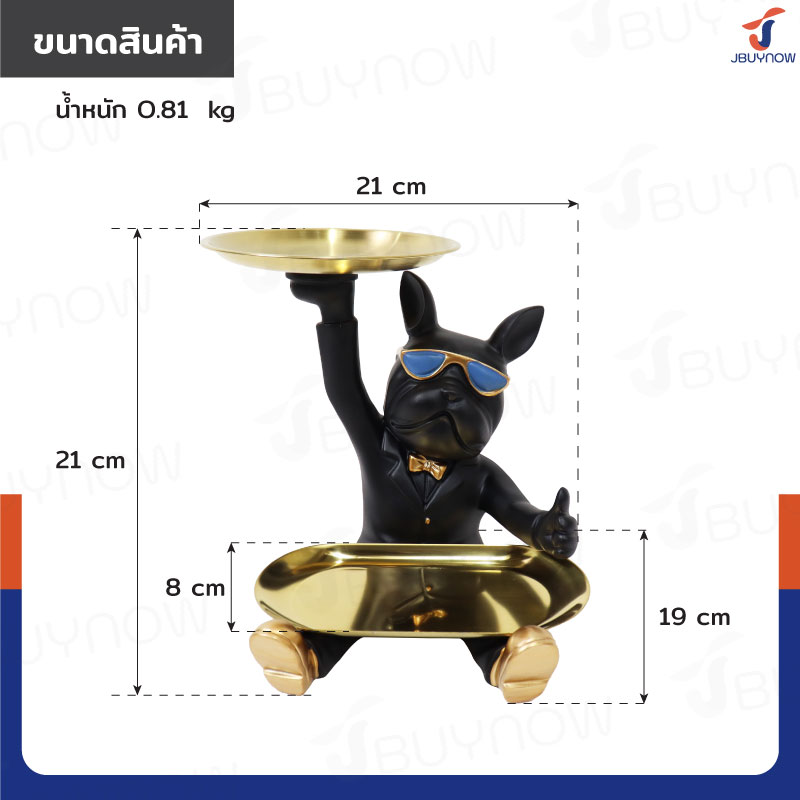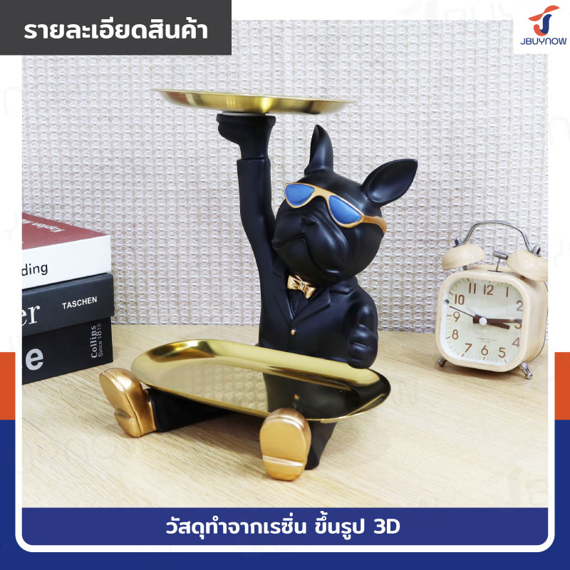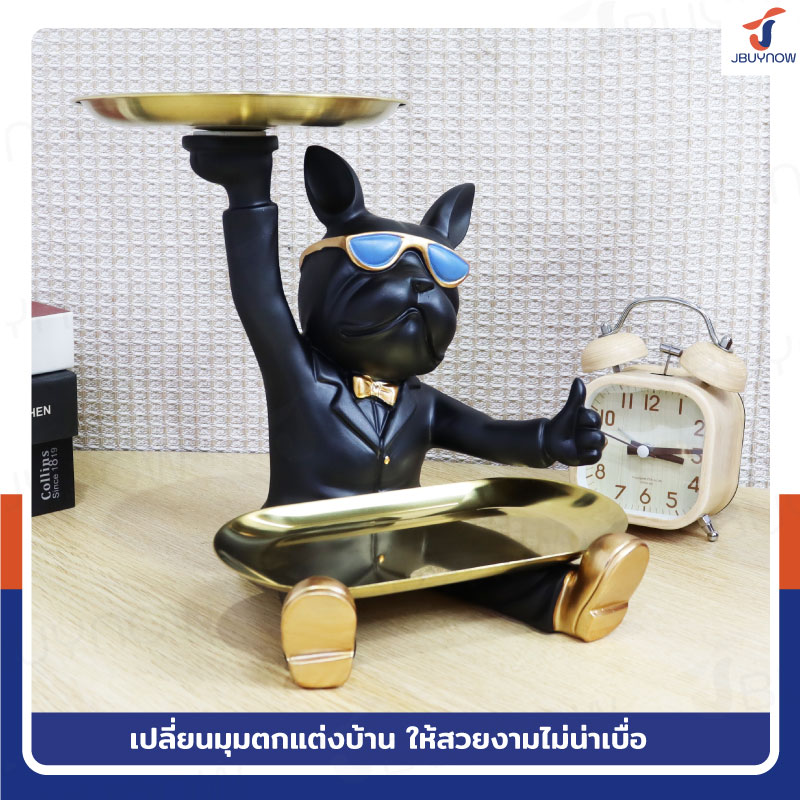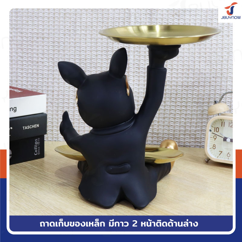รูปปั้นเรซิ่น บลูด็อก 19x21x21 ซม. มีถาดวางของ 2 ใบ รุ่น 4318 สีดำ