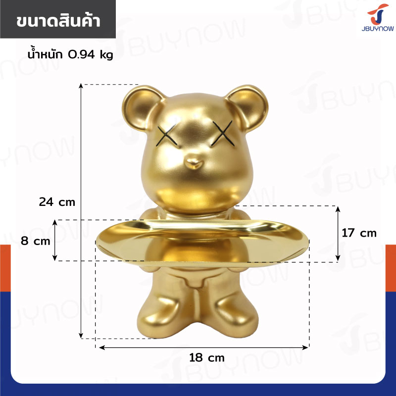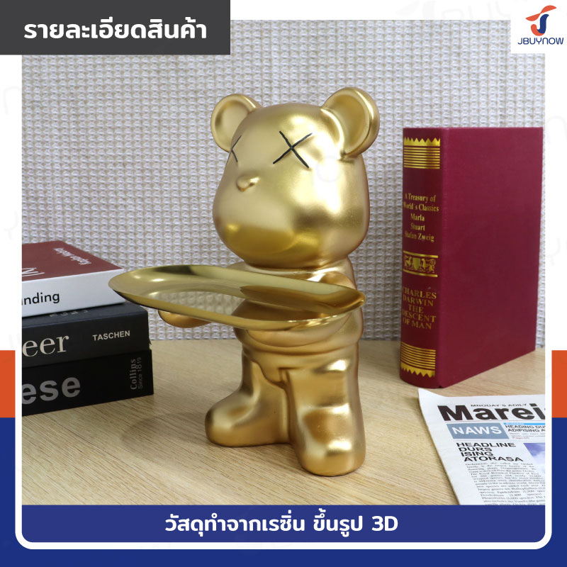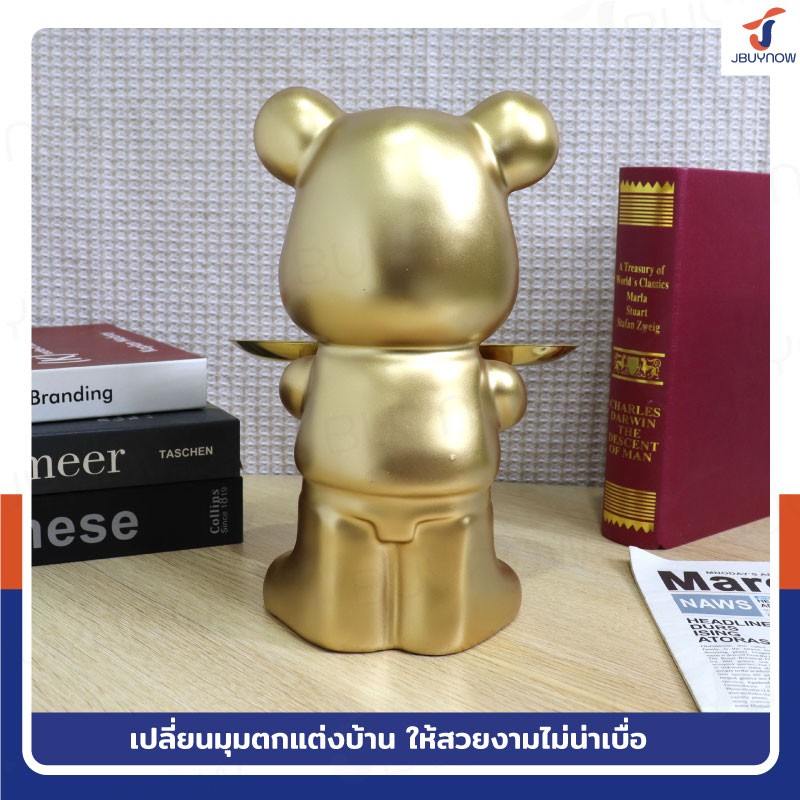 รูปปั้นเรซิ่น หมี 17x18x24 ซม. ถือถาด รุ่น 4325-2 สีทอง