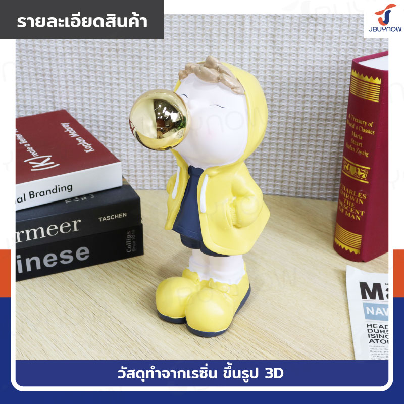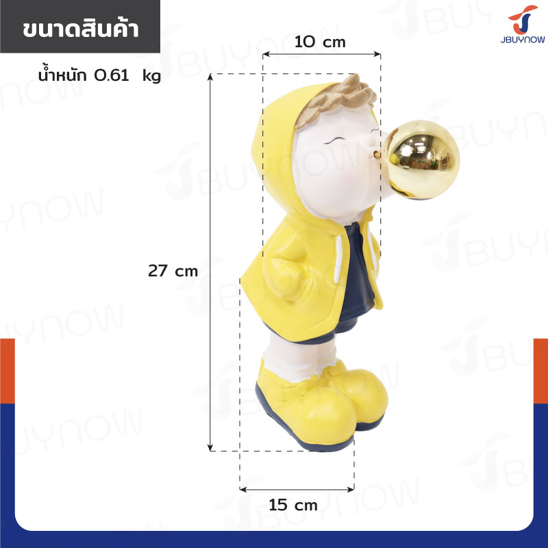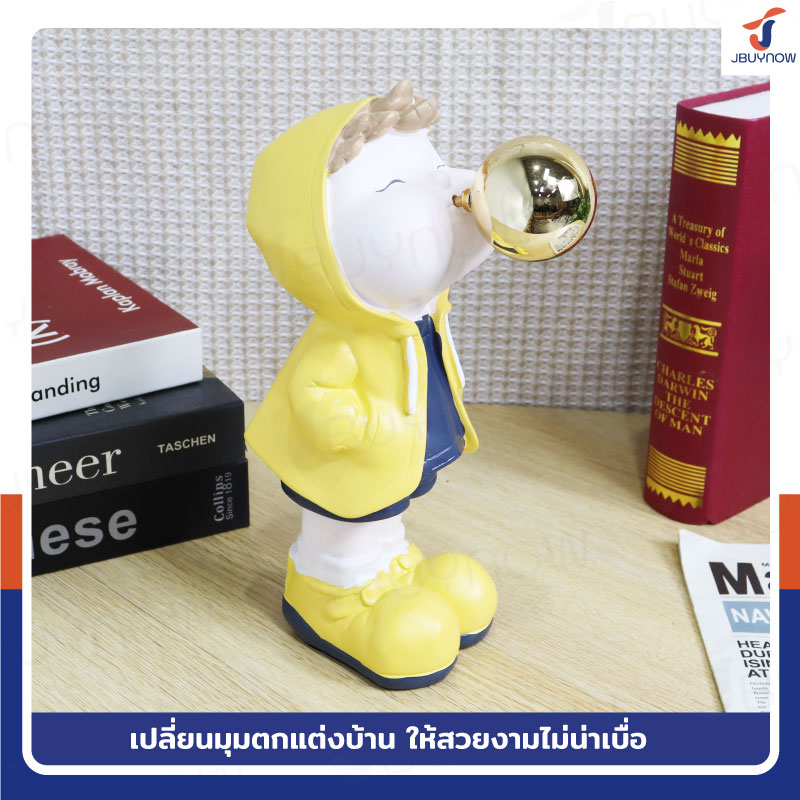 รูปปั้นเรซิ่น เด็กน้อยเป่าโป่ง 10x15x27ซม. รุ่น 4115S สีเหลือง