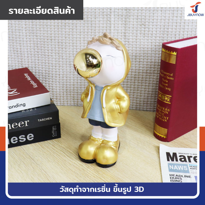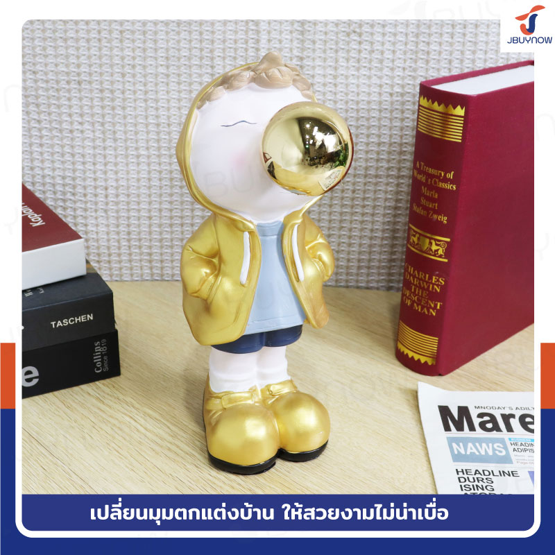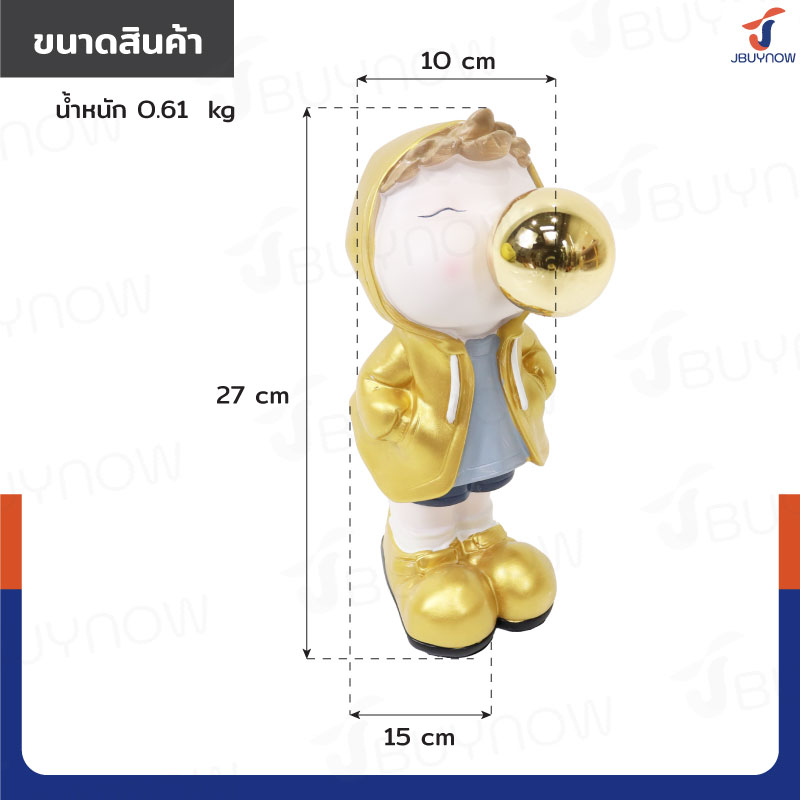 รูปปั้นเรซิ่น เด็กน้อยเป่าโป่ง 10x15x27ซม. รุ่น 4115S สีทอง