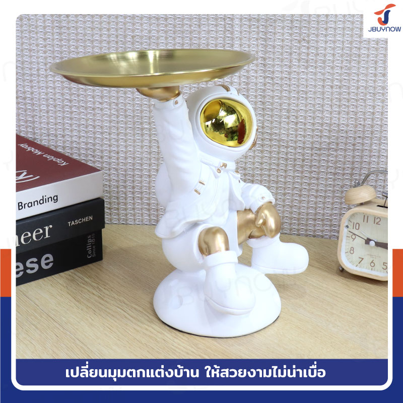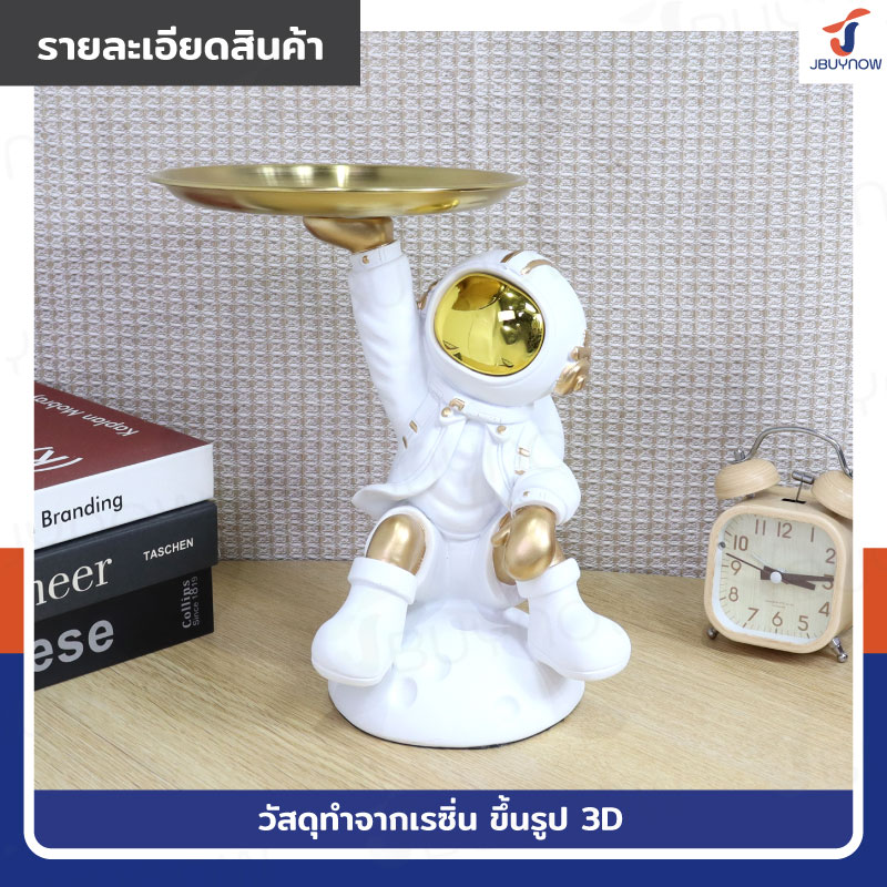 รูปปั้นเรซิ่น นักบินอวกาศ 17x23x25 ซม. มีถาดวางของ รุ่น 4939 สีขาว