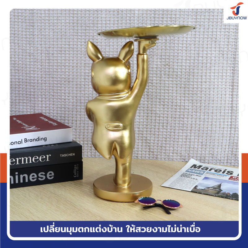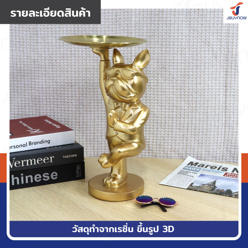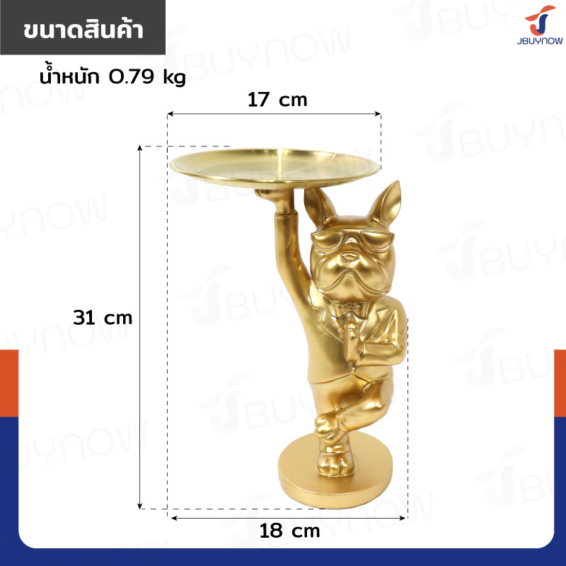 รูปปั้นเรซิ่น บลูด็อก 17x18x31 ซม. มีถาดวางของ รุ่น 2954 สีทอง
