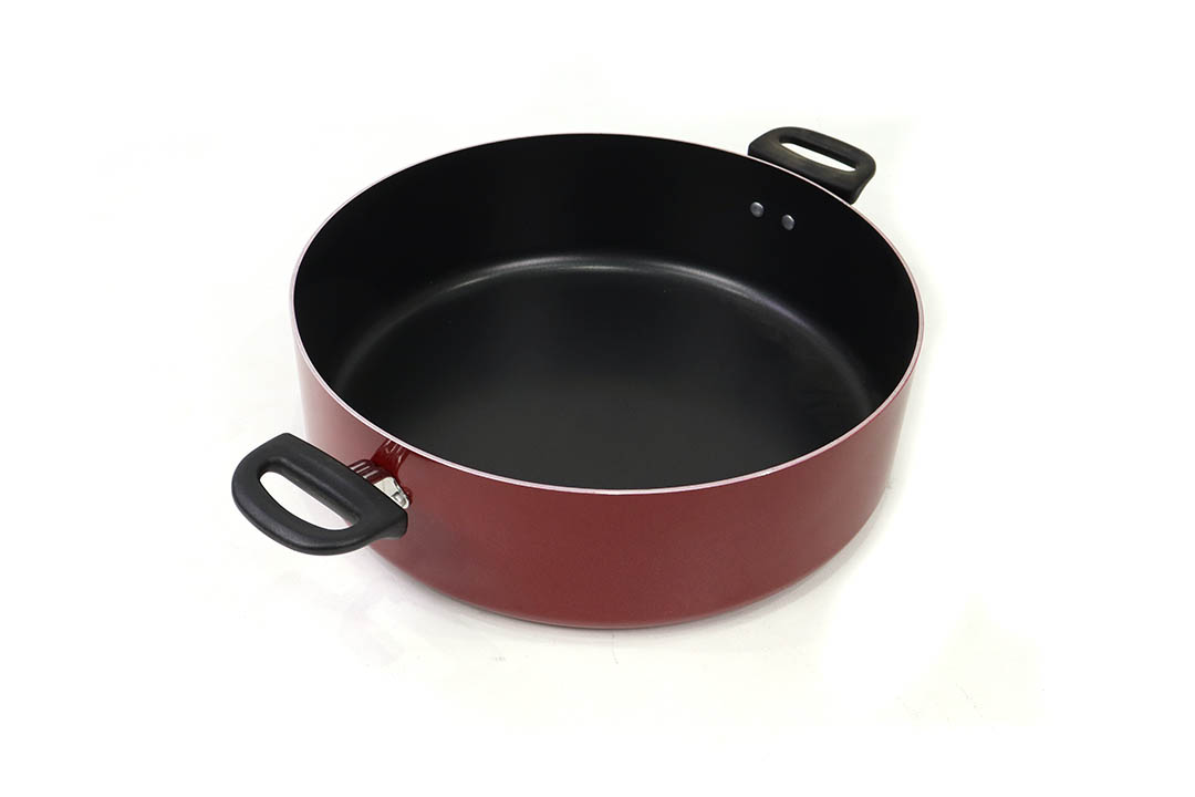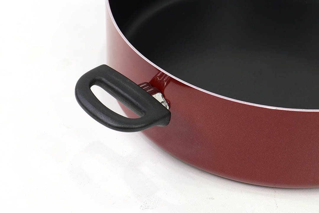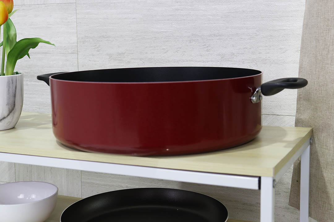 Cooking Pot หม้อเคลือบ ก้นตื้น หูจับหุ้มพลาสติก สีแดง 36x50x10 cm R-1