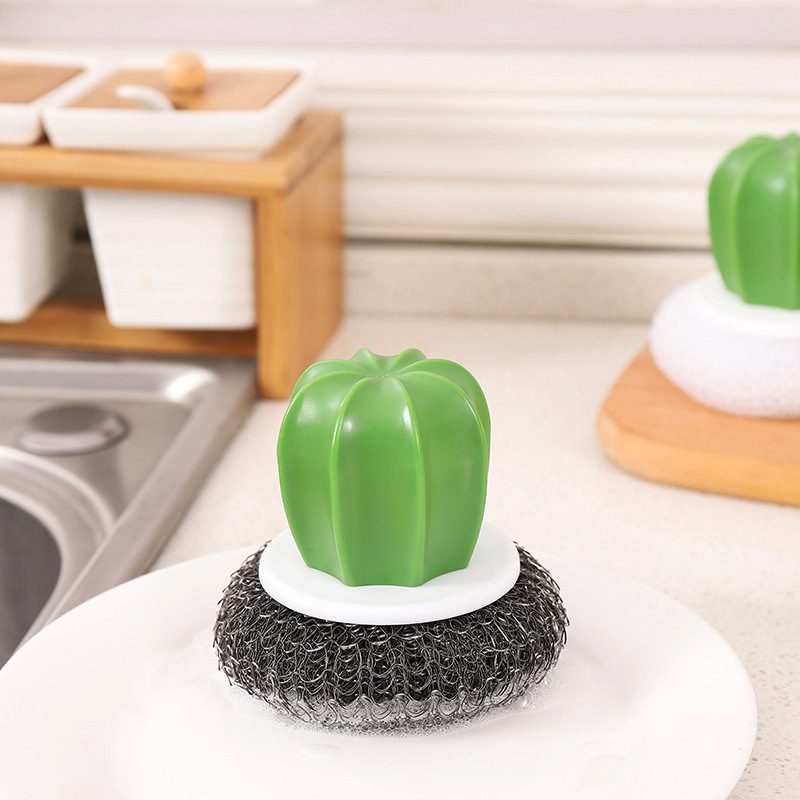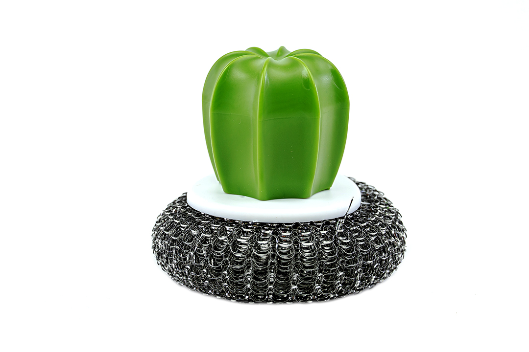 Kitchen sponge ฝอยขัดหม้อ ฟองน้ำล้างจาน รูปกระบองเพชร 8x8x9 cm ฝอยสีดำ JR0420-56
