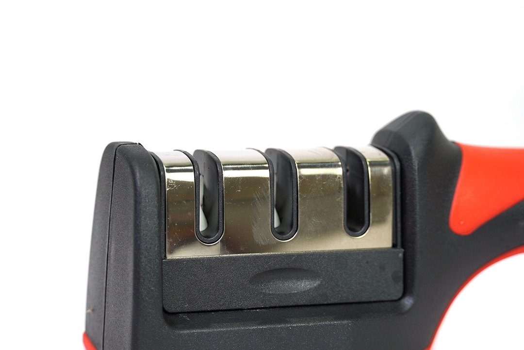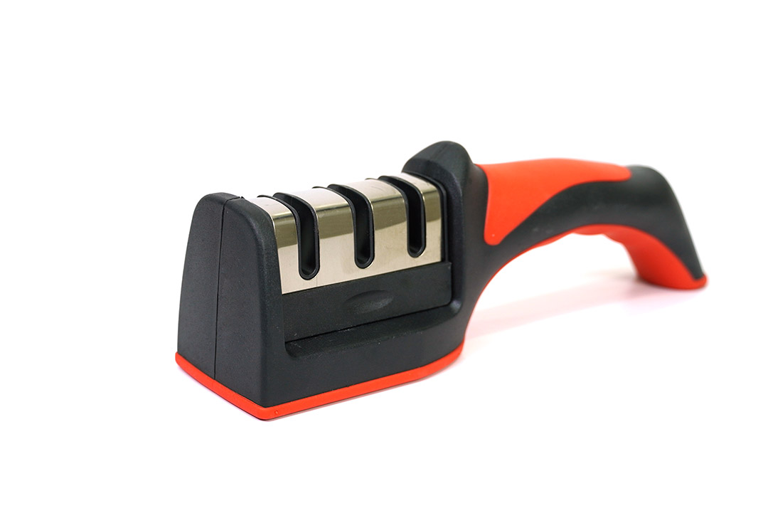 - จับด้ามจับของอุปกรณ์ลับมีดให้มั่นคง ไม่เลื่อนไปมา