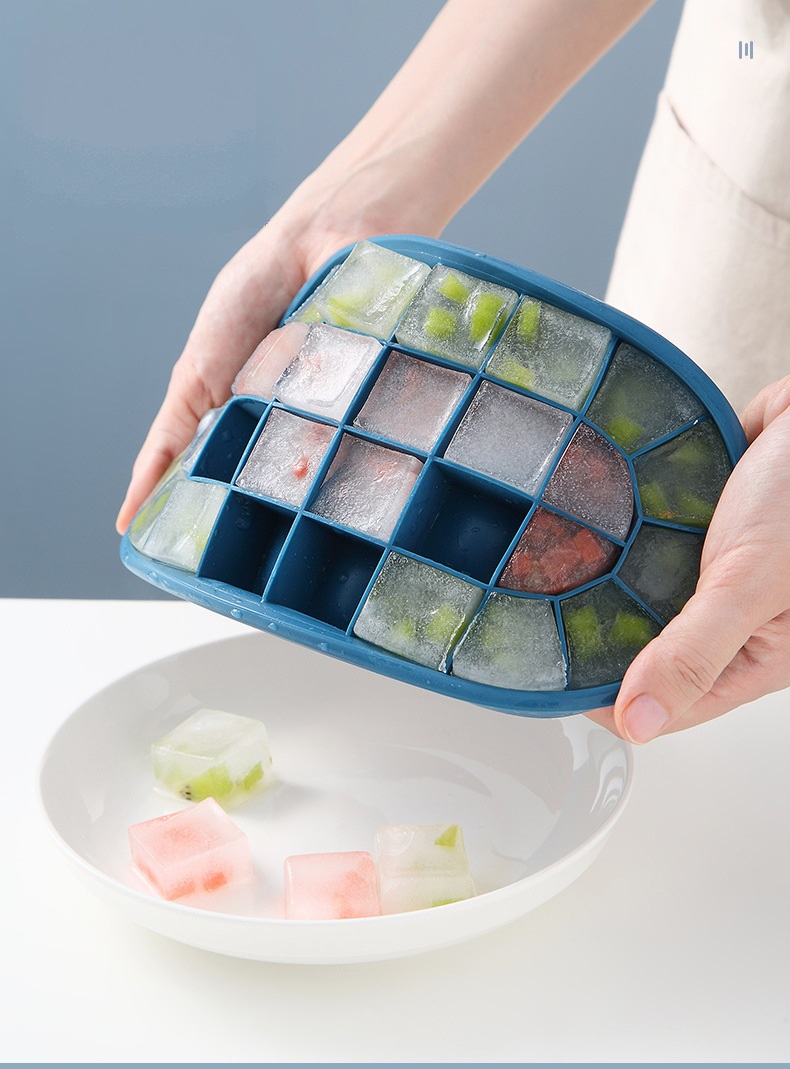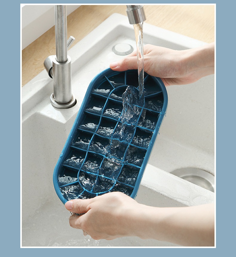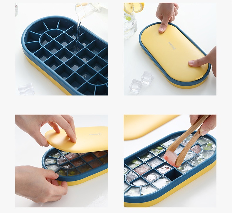 Silicone ice tray แม่พิมพ์น้ำแข็ง มีฝาปิด 12x24x3 cm สีเหลือง-น้ำเงิน ST210706-4Y