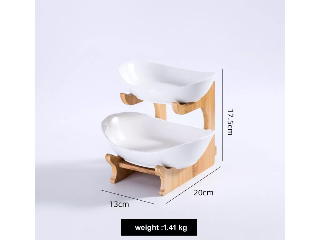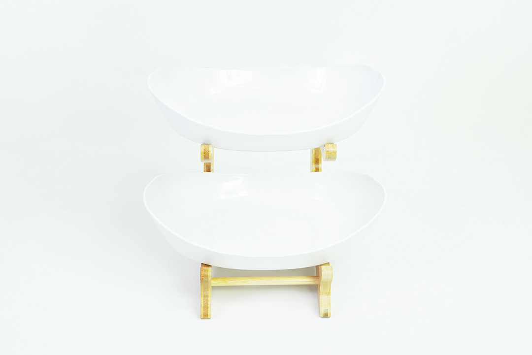 Snack plate ชุดชั้นวางขนม 2 ชั้น จานผลไม้ สีขาว 15x21x22 cm ST210721-17WH