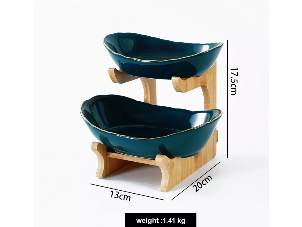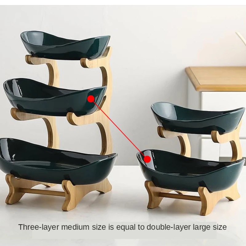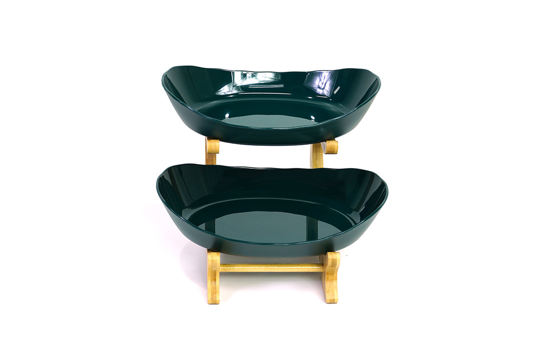 Snack plate ชุดชั้นวางขนม 2 ชั้น จานผลไม้ สีเขียว 15x21x22 cm ST210721-17GR