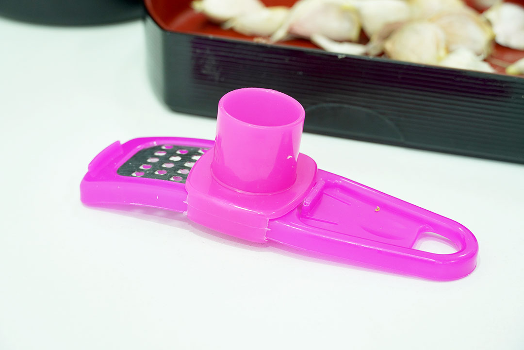 Garlic presser ที่บดกระเทียม ขูดกระเทียม ขูดขิง ขูดขมิ้น สไลด์ผักพลาสติก สีชมพู 5x14x4 cm S190065PI