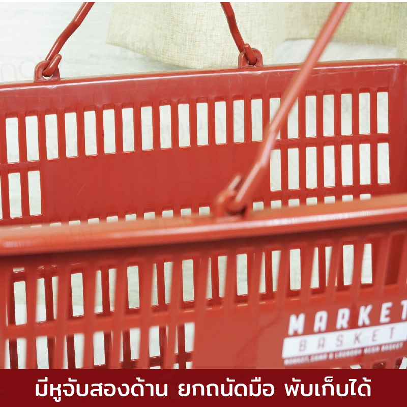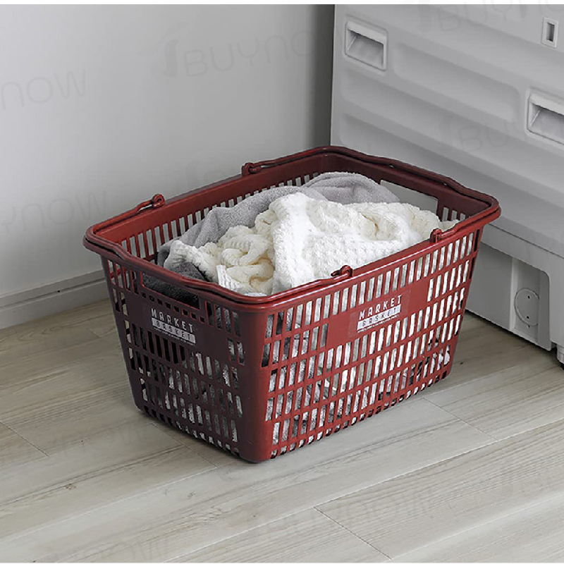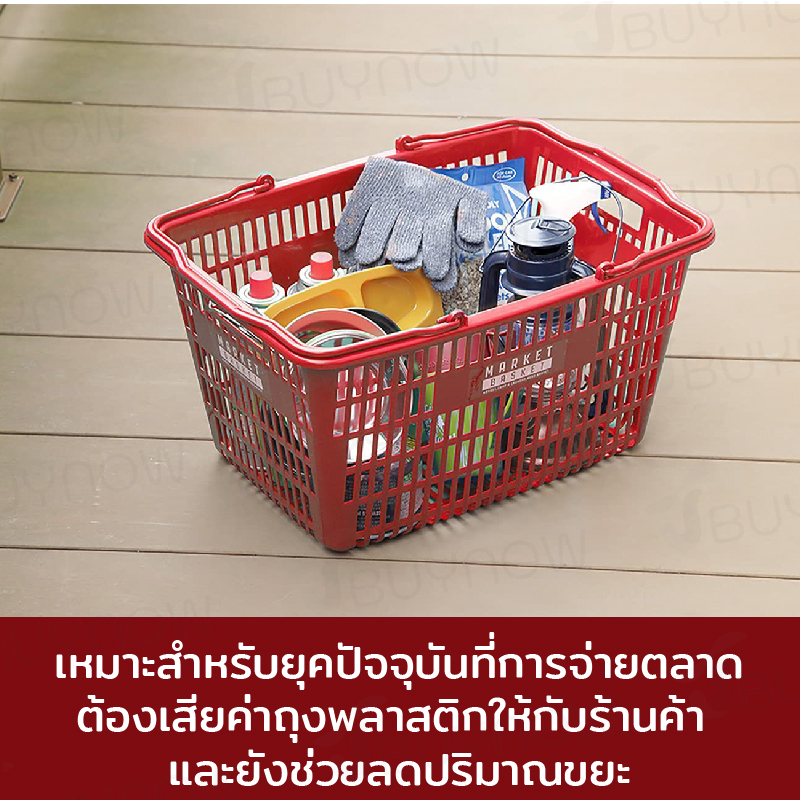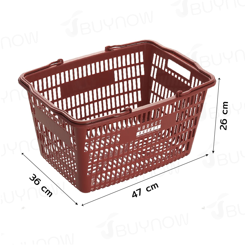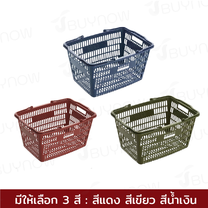 Shopping Basket ตะกร้าพลาสติก หูหิ้ว ตะกร้าจ่ายตลาด JP Quality 36×47×26 cm สีแดง MA-3083