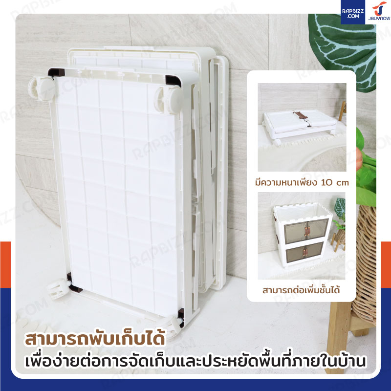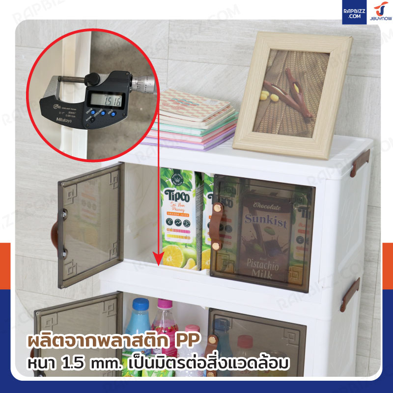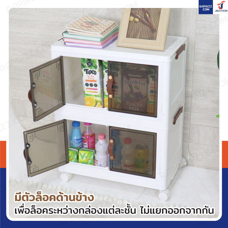 - ที่เปิด-ปิดเป็นประตูบานพับ 2 ประตู เปิด-ปิดลื่นไม่สะดุด หยิบของได้ง่าย