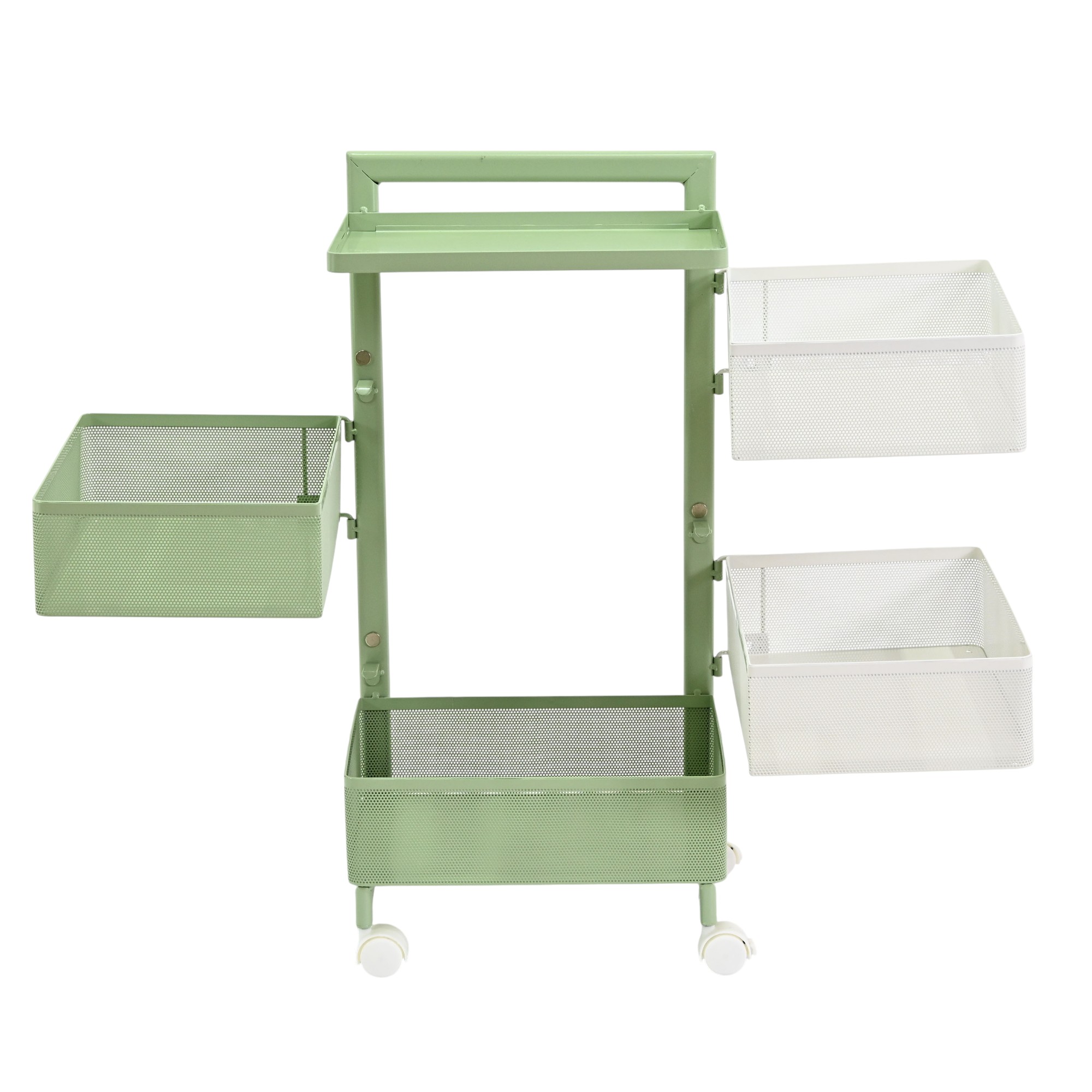 ชั้นวางของ 4 ชั้น อเนกประสงค์ มีล้อ 27x35x74 cm สีเขียว-ขาว