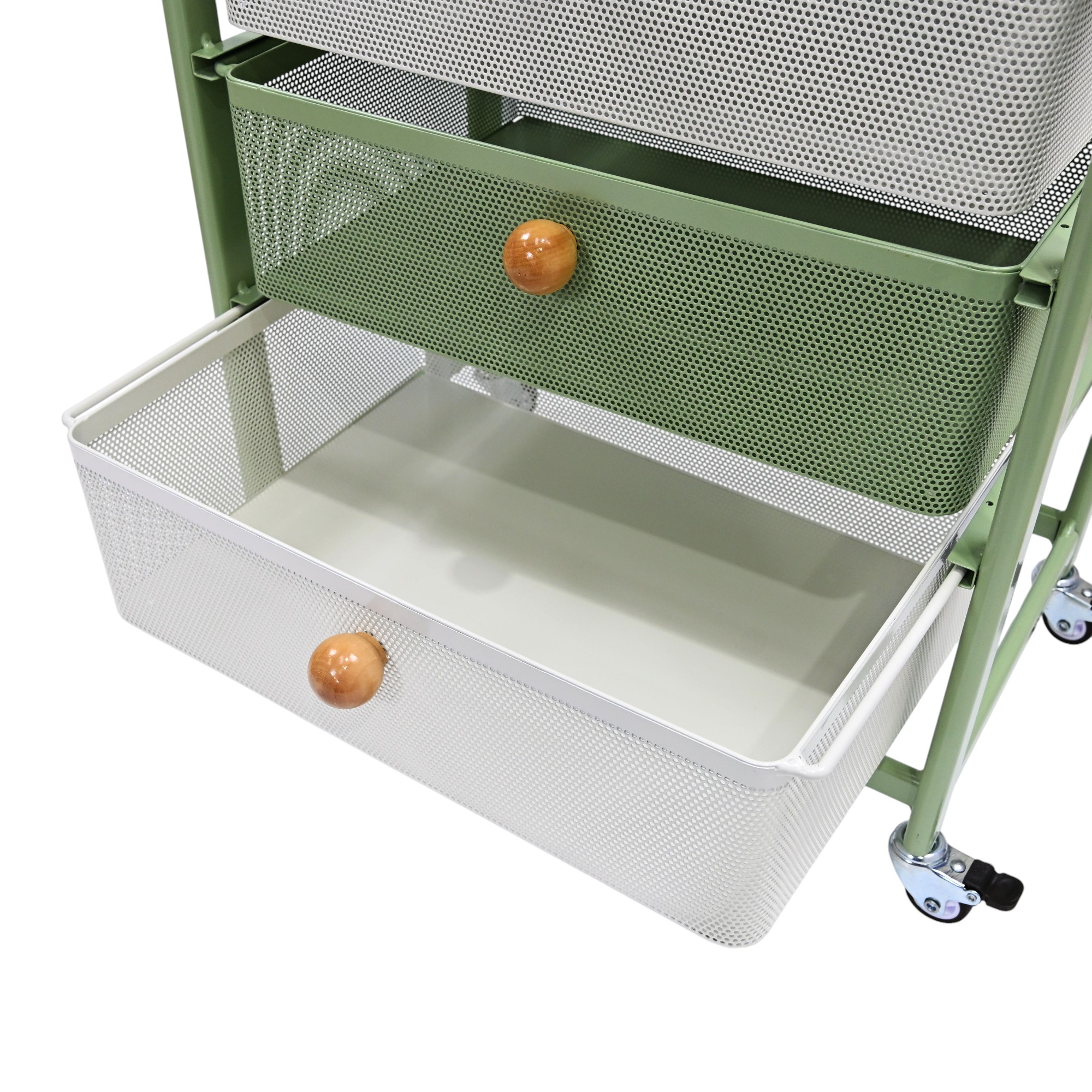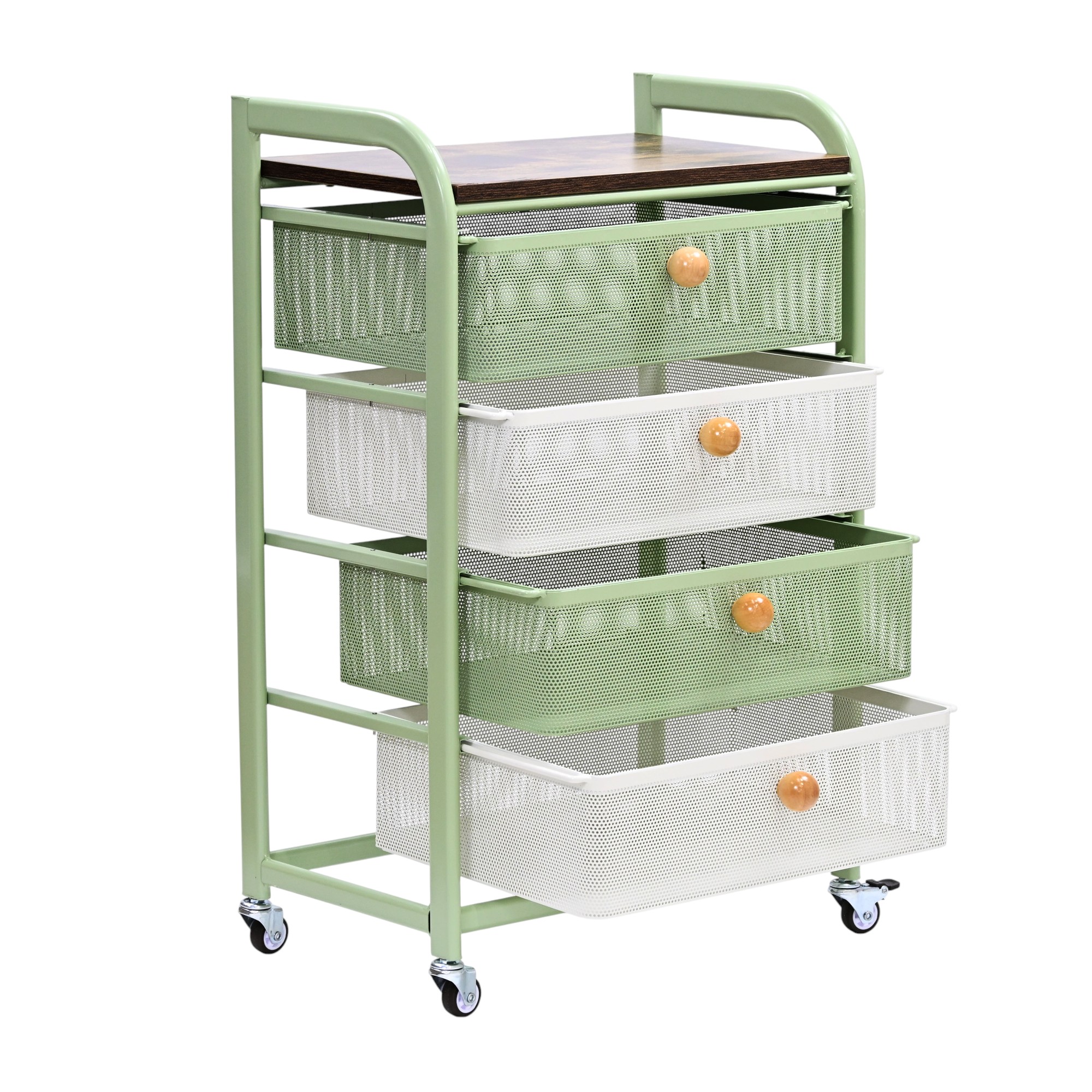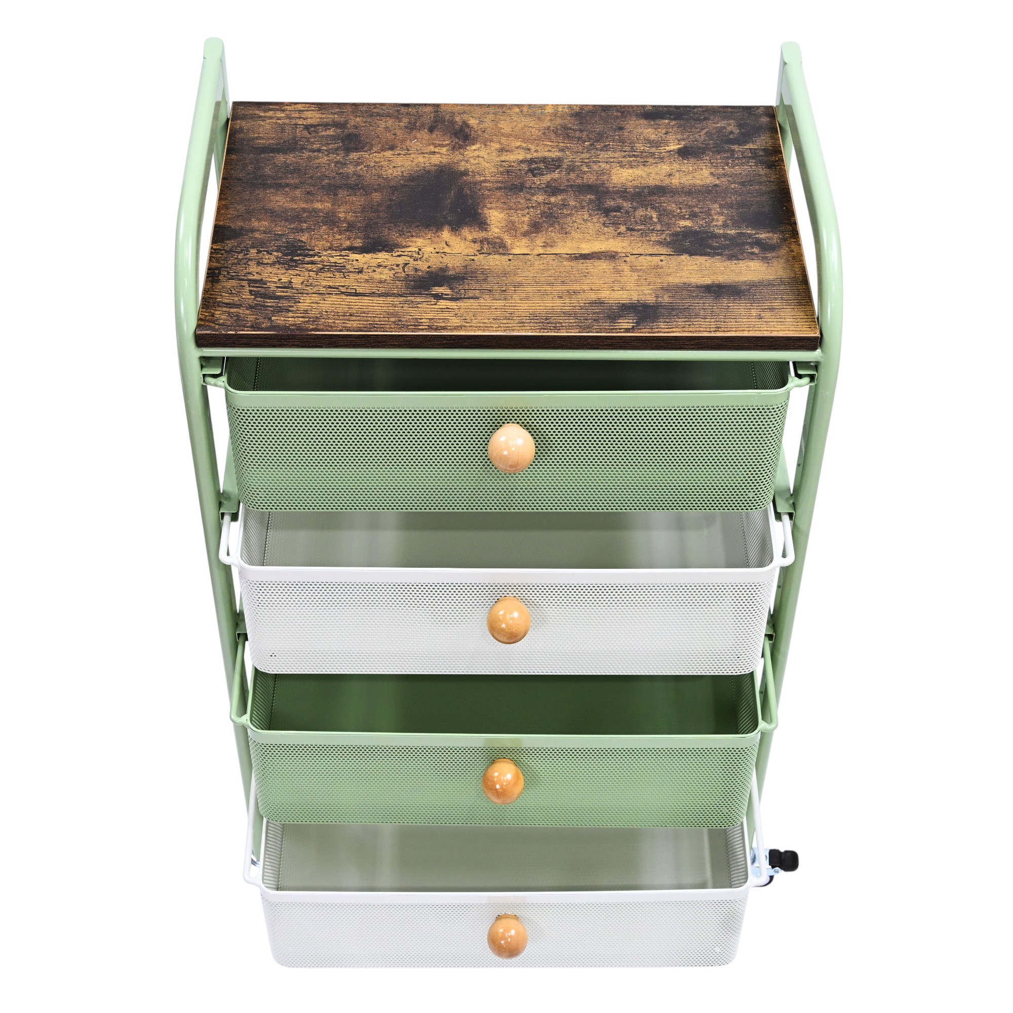 ชั้นวางของ 4 ลิ้นชัก อเนกประสงค์ แบบลิ้นชัก มีล้อ 25x40x65 cm สีเขียว-ขาว