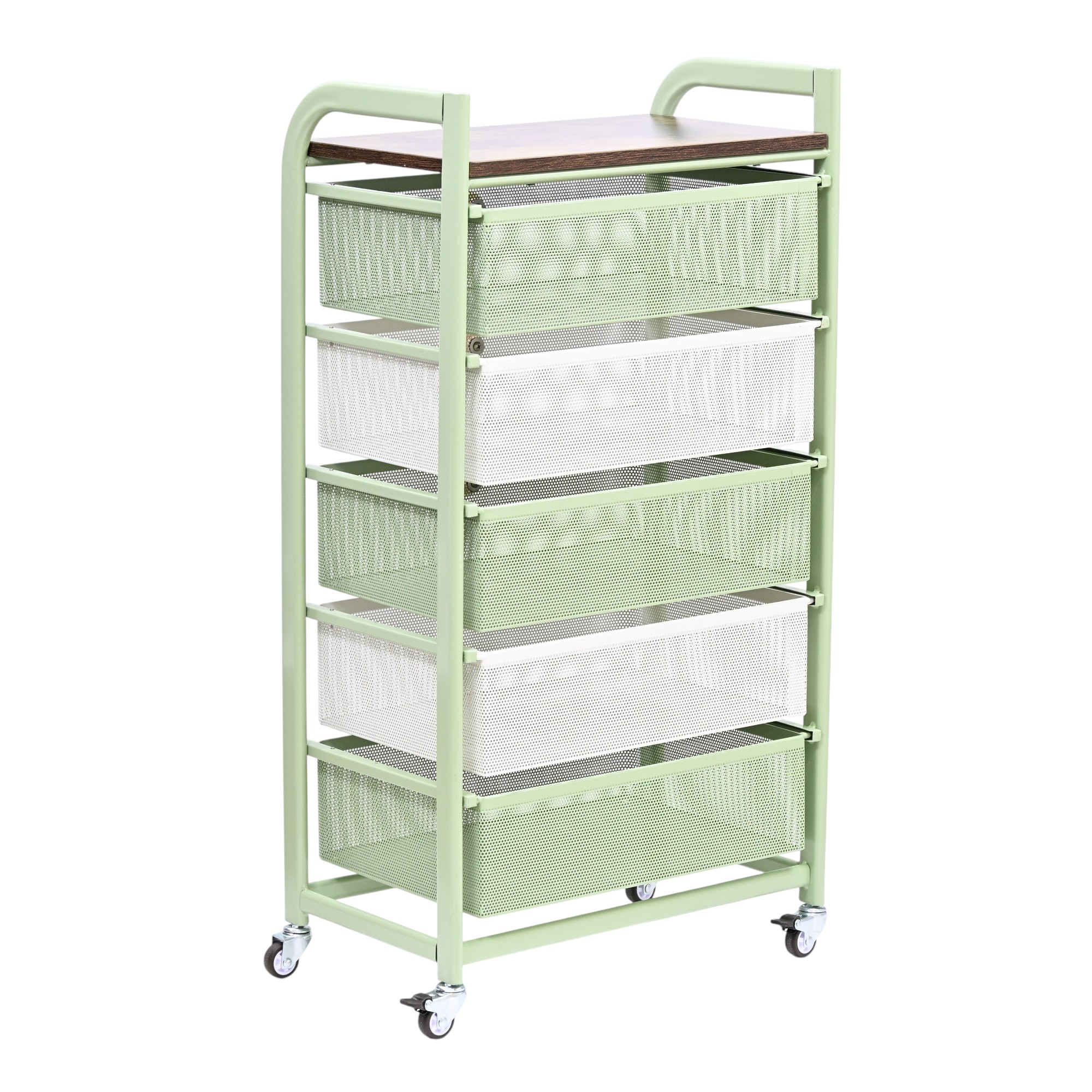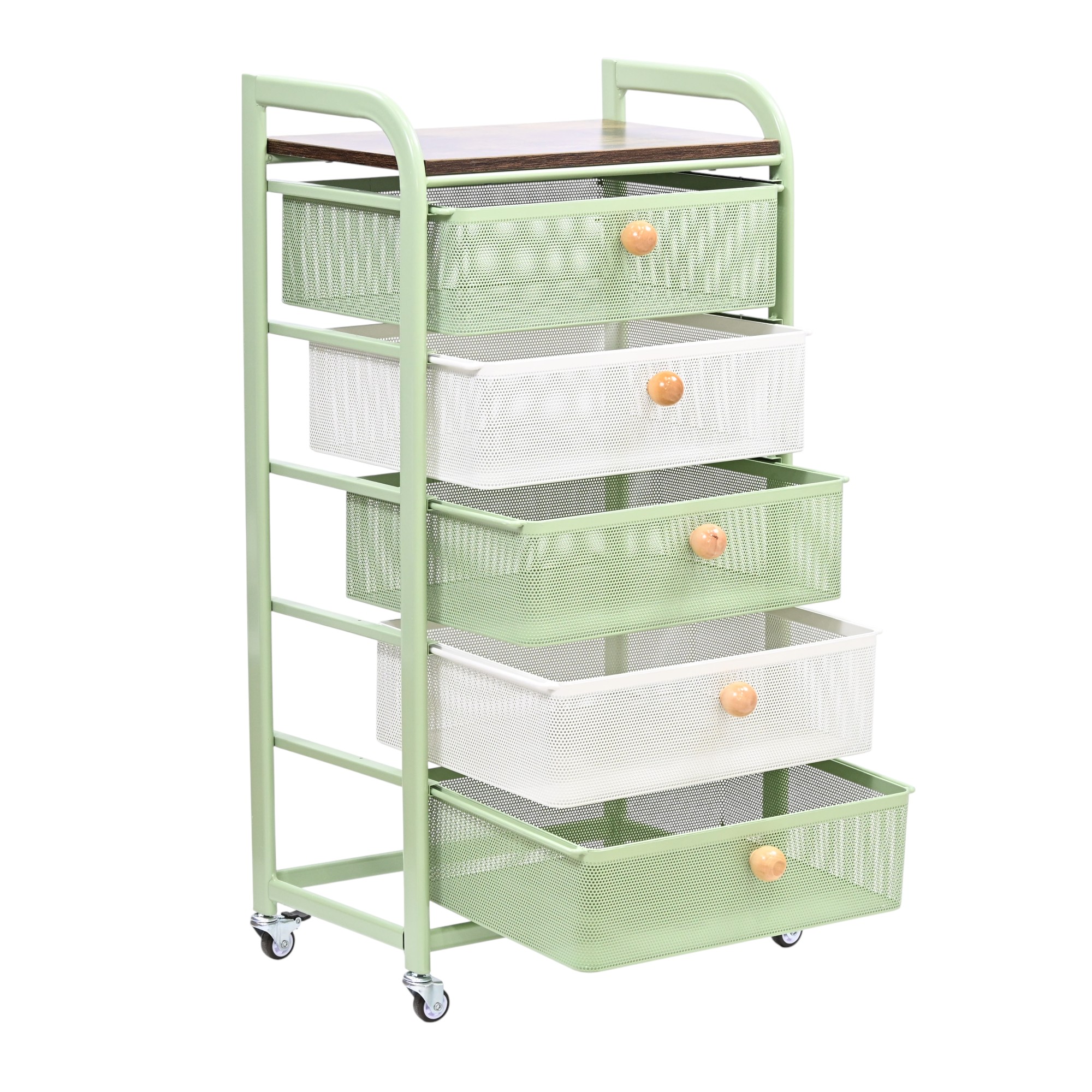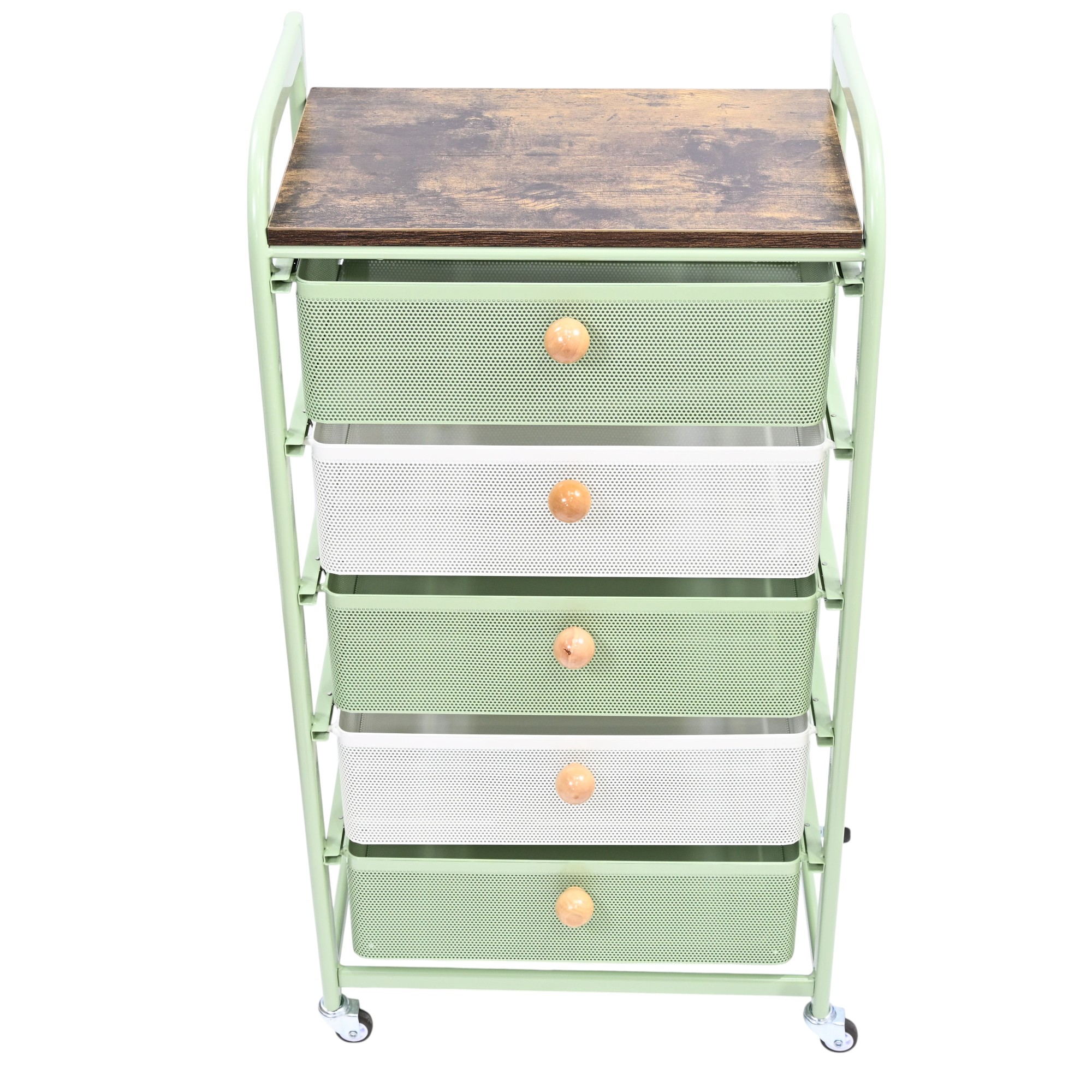 ชั้นวางของ 5 ลิ้นชัก อเนกประสงค์ แบบลิ้นชัก มีล้อ 25x40x78 cm สีเขียว-ขาว