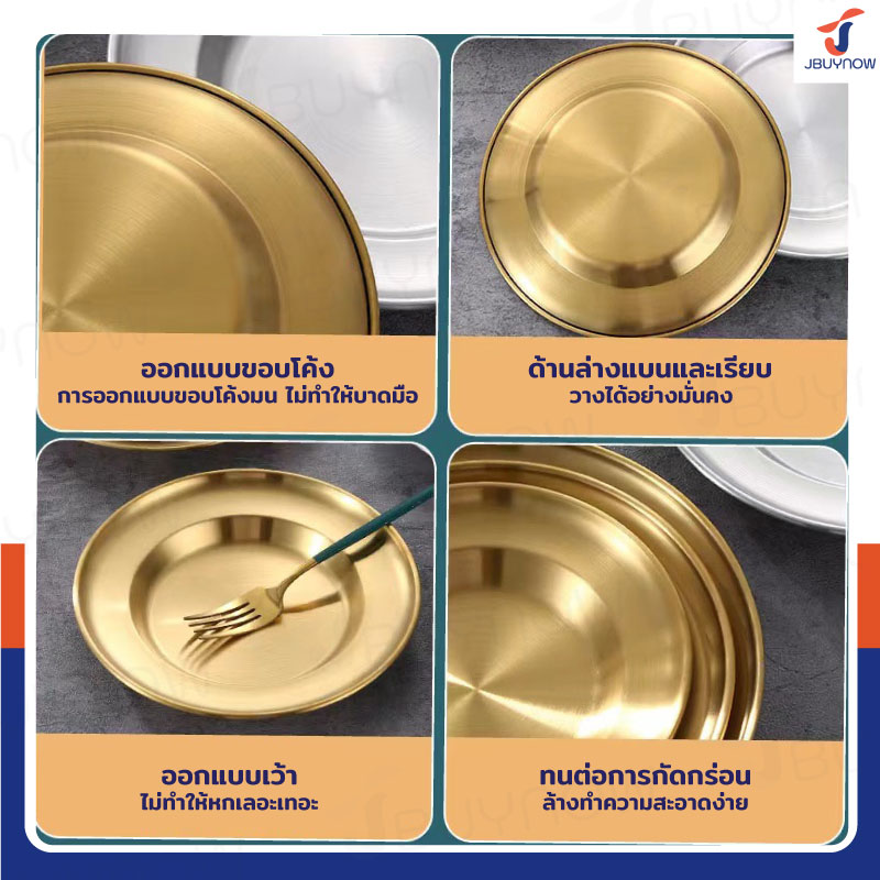 จานสแตนเลสเกรด 304 17x17x2.5cm สีทอง JBUYNOW RB230719-53