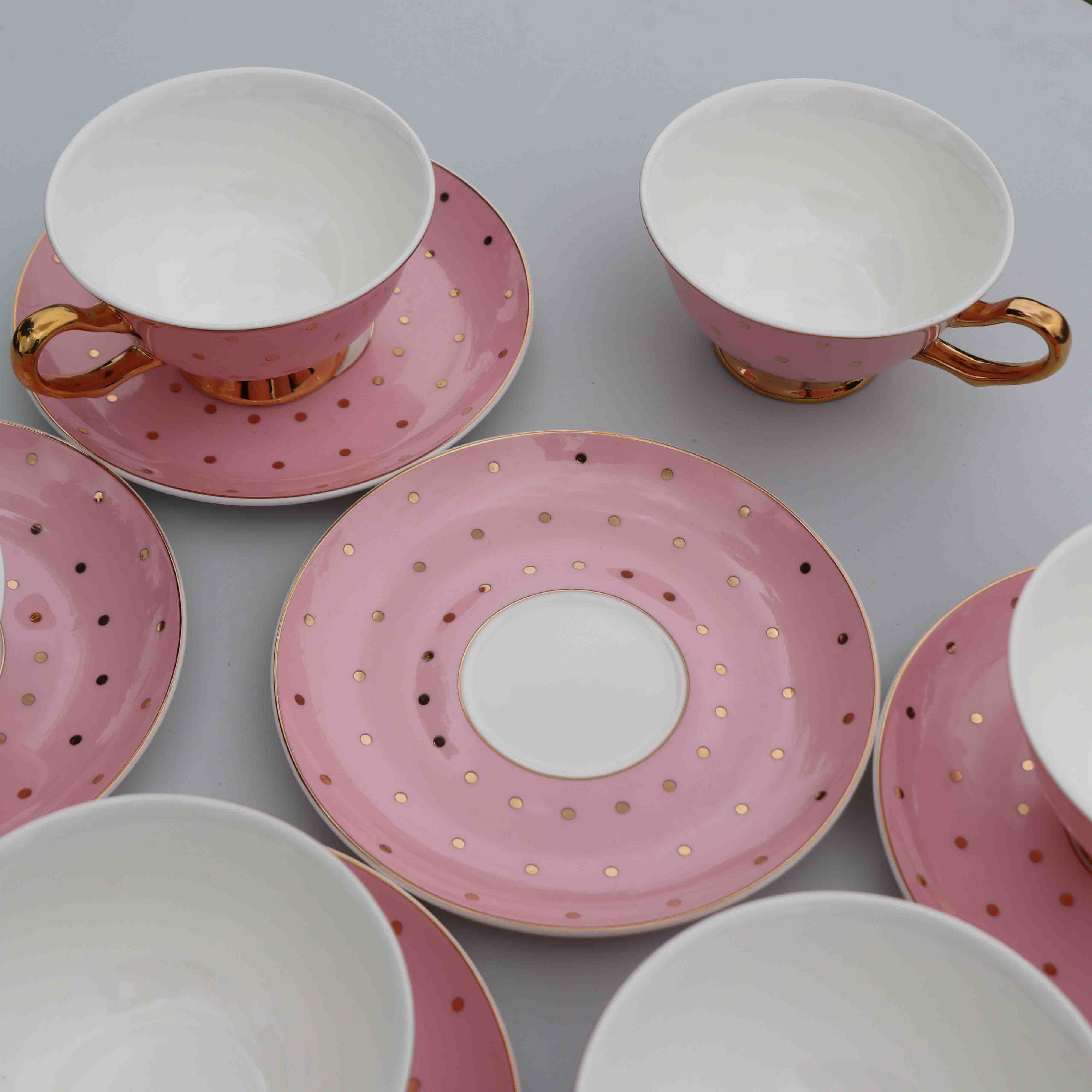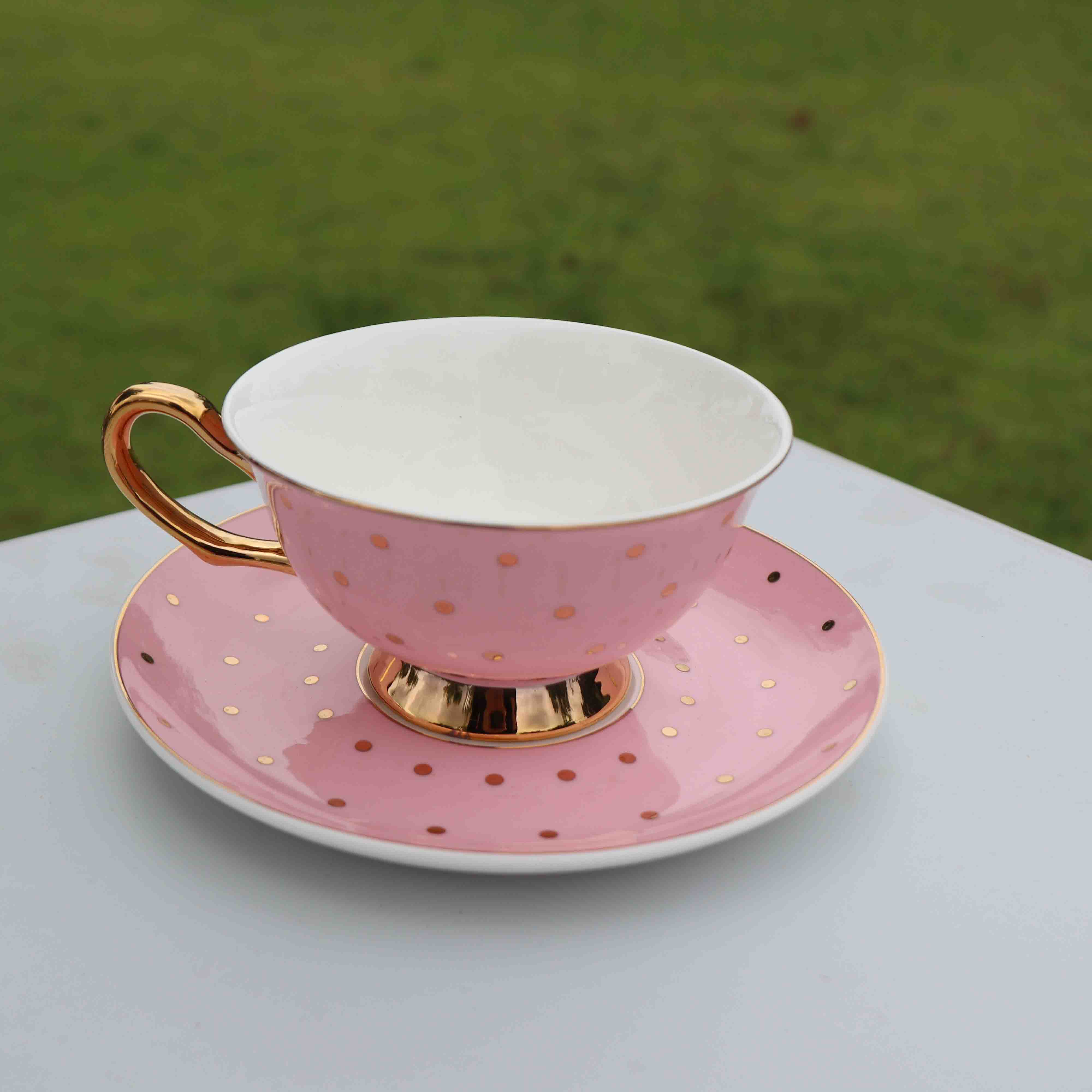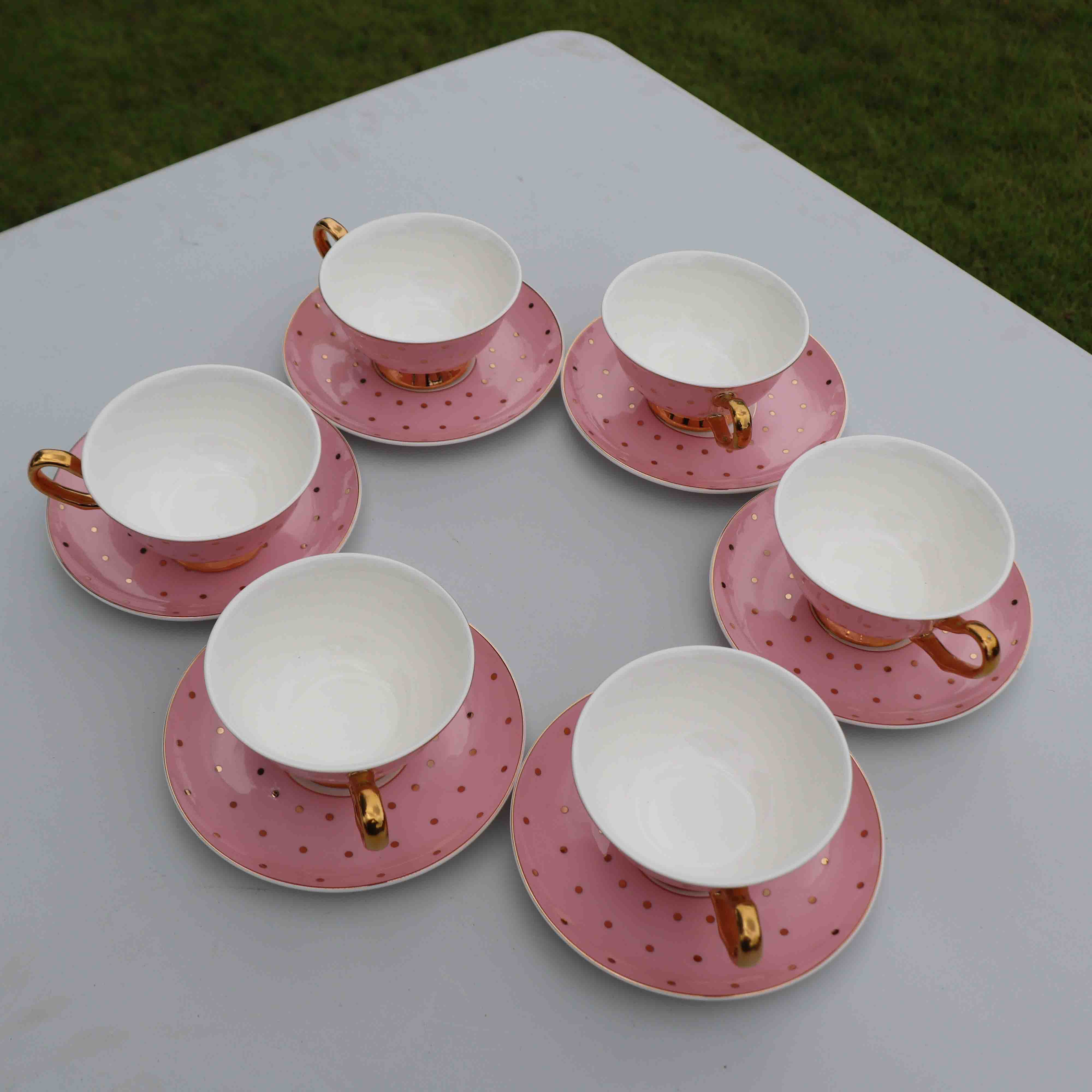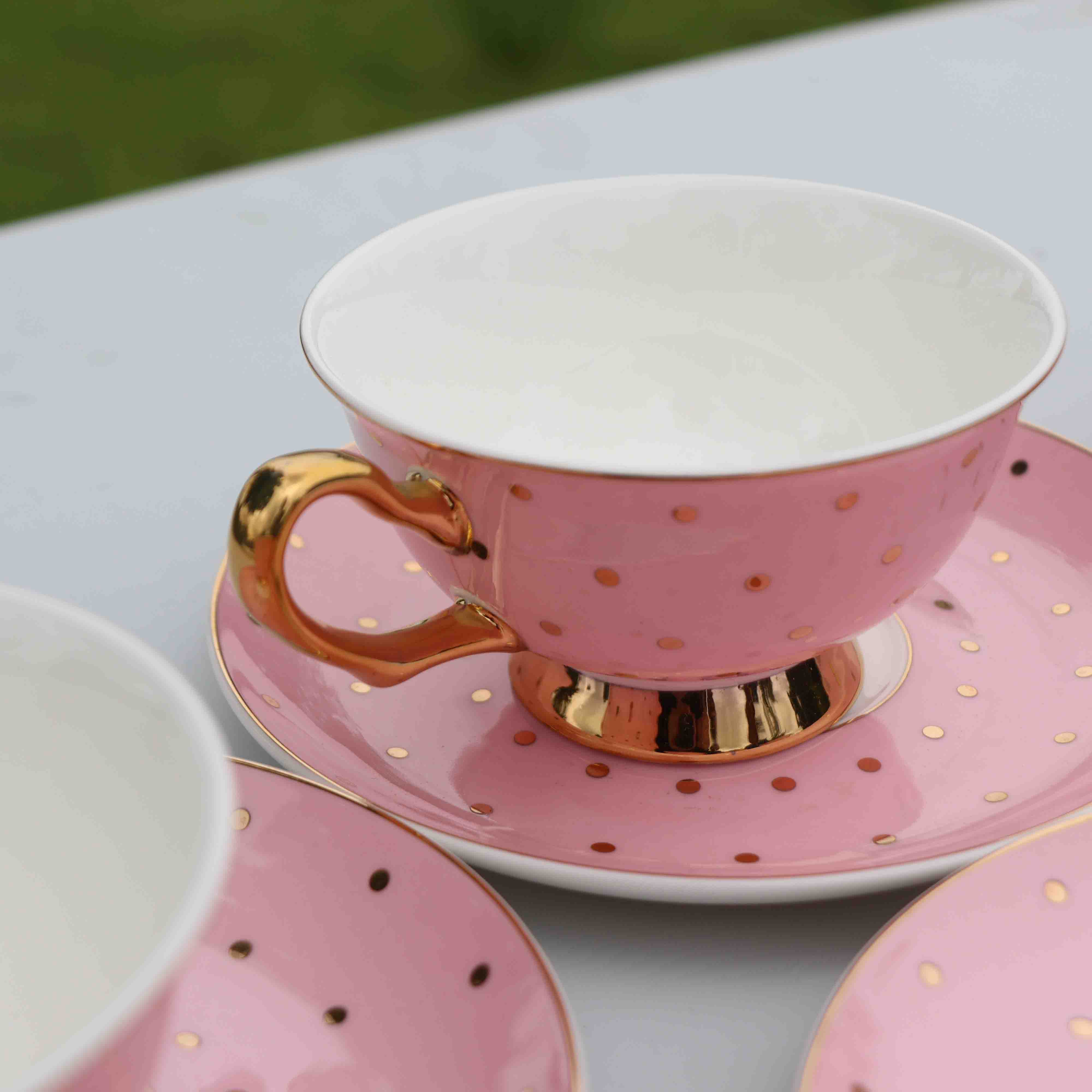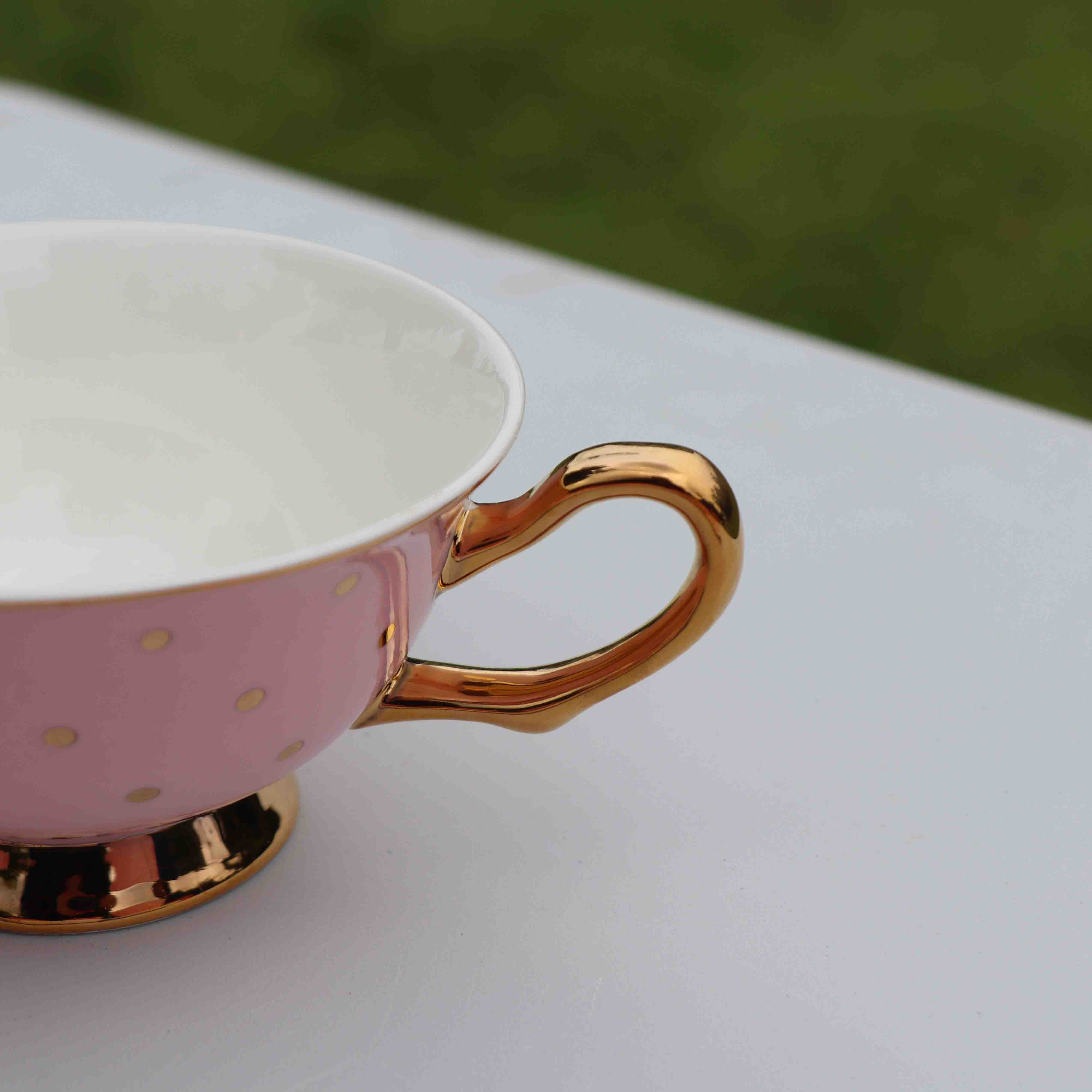 - ถ้วยชา แก้วกาแฟ เซรามิค สีชมพูเป็นลายจุด