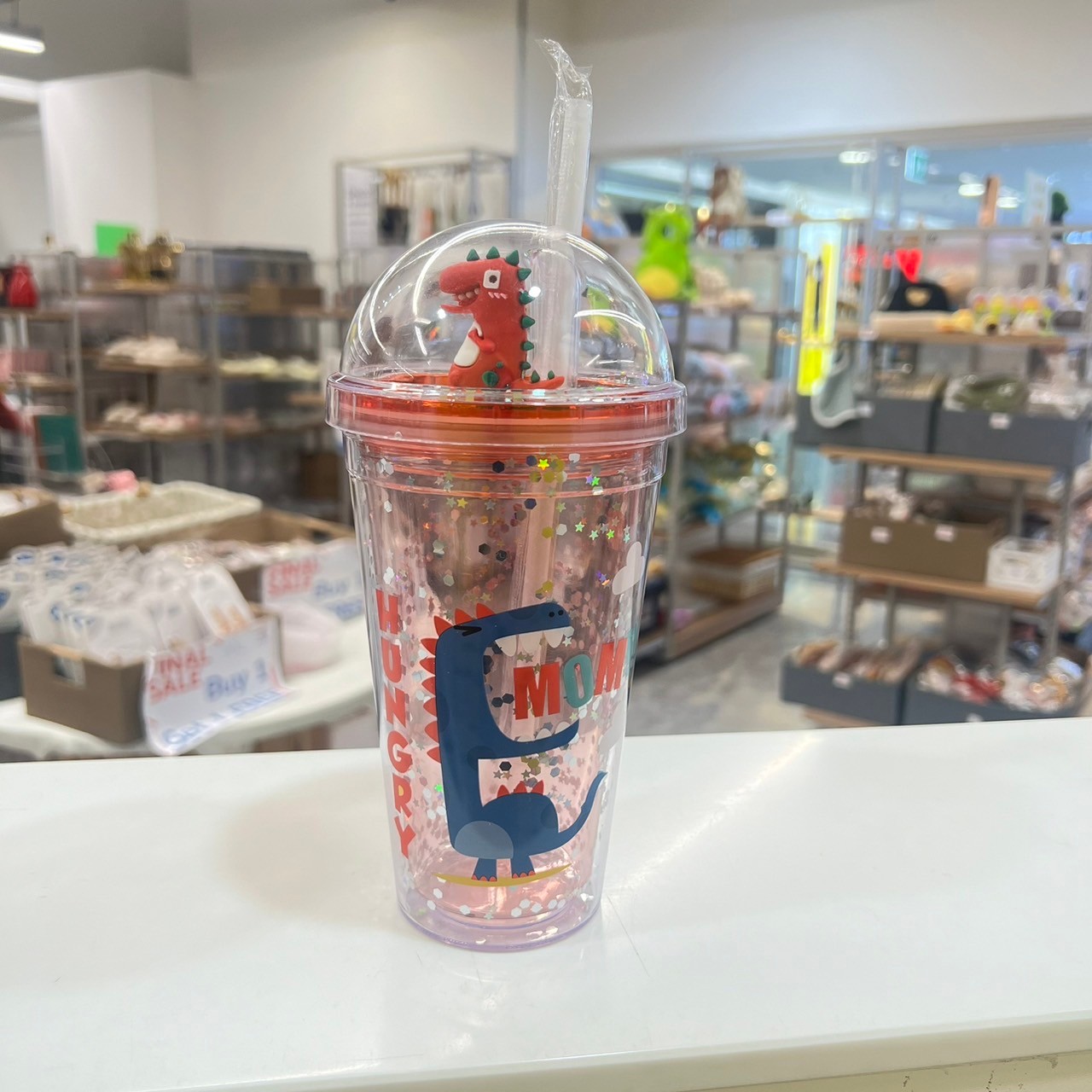 แก้วน้ำพร้อมหลอดดูด 450 ML ลาย ไดโนเสาร์ คละแบบA-14
