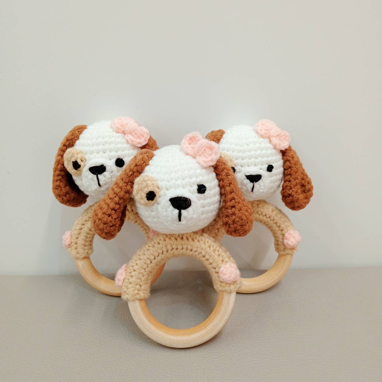 - กระดิ่งถักโครเชต์สำหรับเด็กทารก รูปสุนัข
