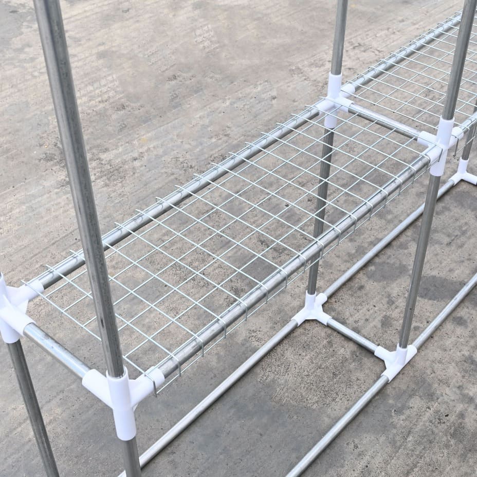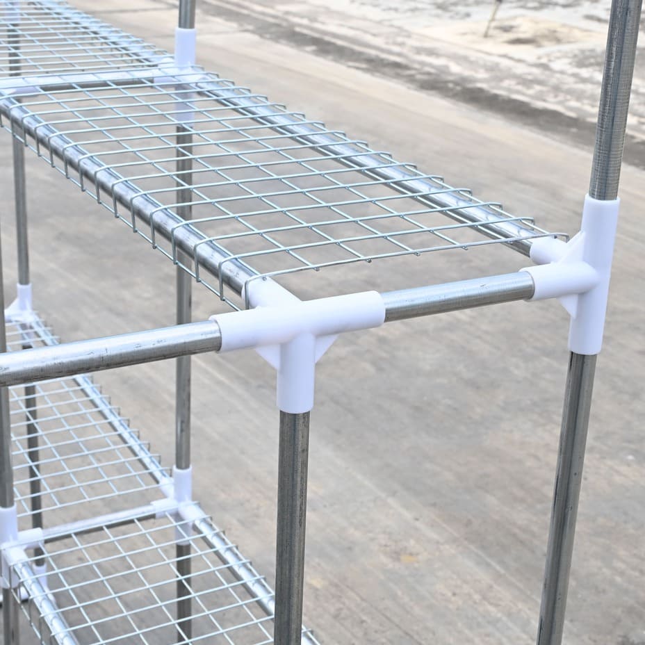 - ชั้นตะแกรงด้านในเป็นโครงเหล็ก มีช่องว่างทำให้น้ำสามารถไหลลงได้ ไม่ท่วมขัง เมื่อมีการรดน้ำ