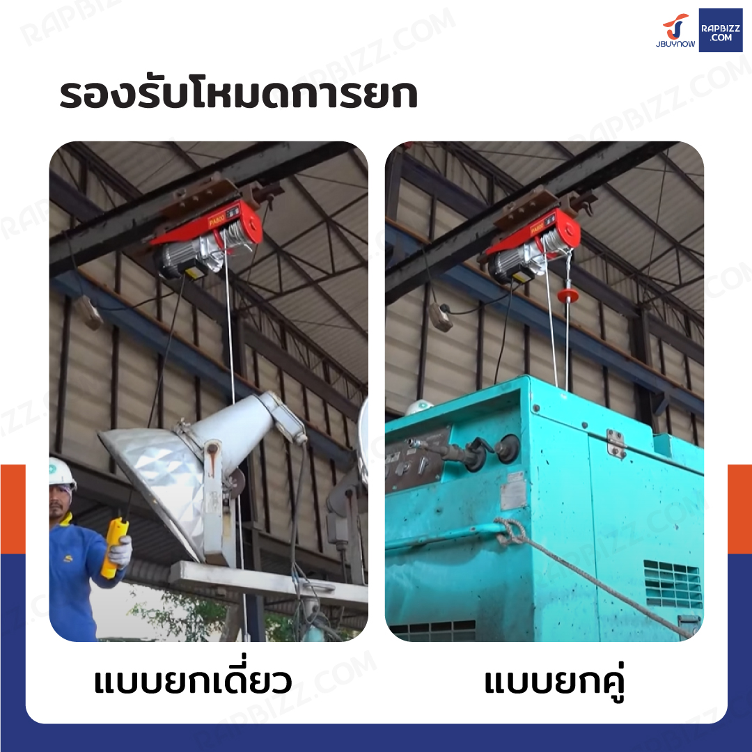 - รอกไฟฟ้า รอกสลิงไฟฟ้า ติดตั้งง่าย น้ำหนักเบา เหมาะสำหรับงานยกย้ายสินค้า งานก่อสร้างในโรงงานอุตสาหกรรม โรงกลึง โรงงานแปรรูปอาหารทะเล อู่ซ่อมรถยนต์ และอื่นๆ