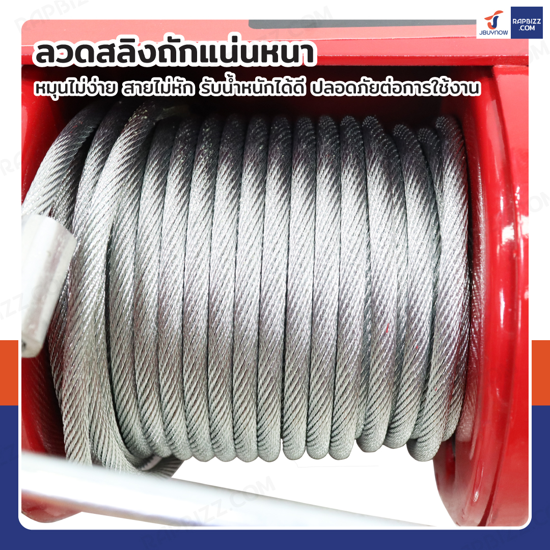 - ลวดสลิงถักแน่นหนา หมุนไม่ง่าย สายไม่หัก รับน้ำหนักได้ดี ปลอดภัยต่อการใช้งาน