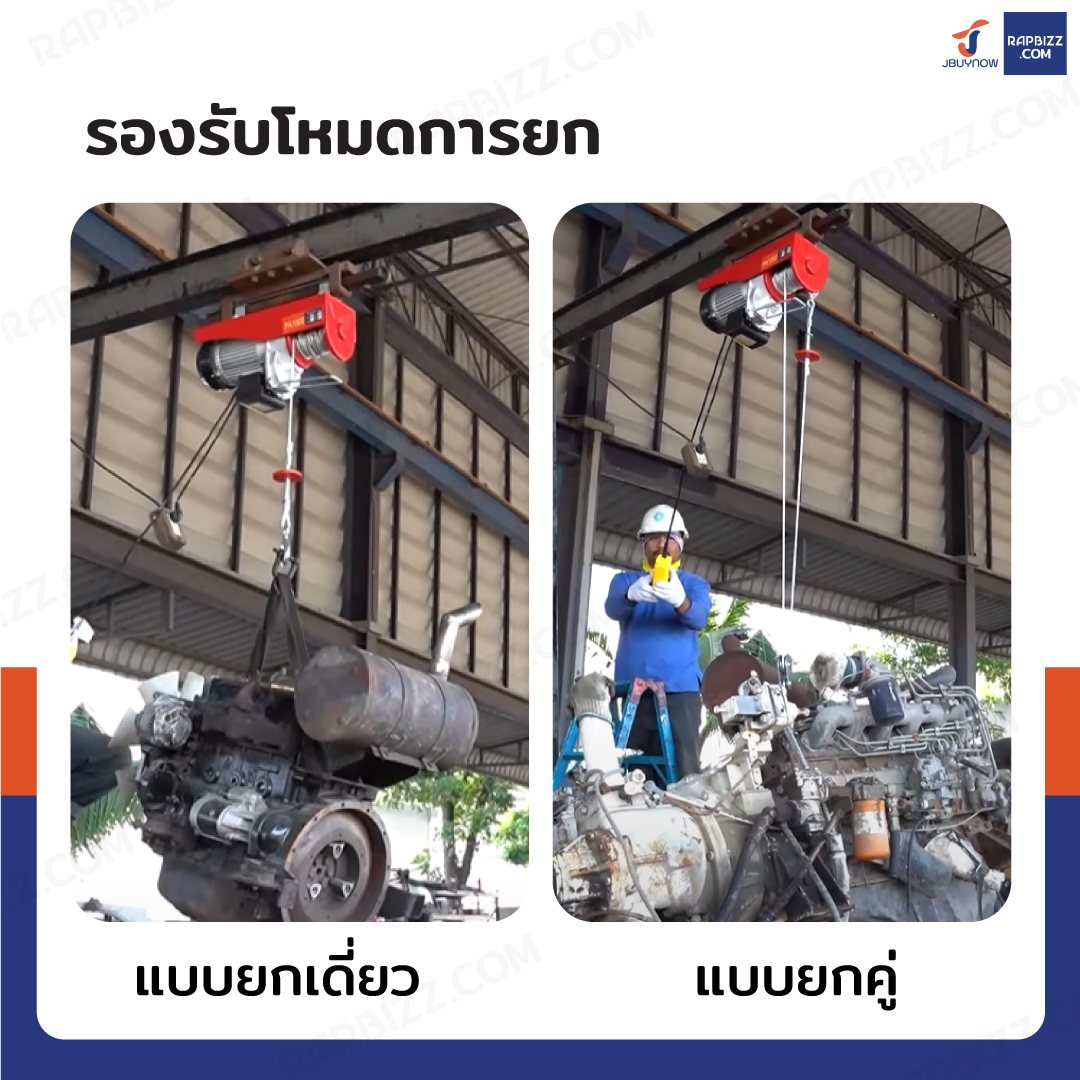 - รอกไฟฟ้า รอกสลิงไฟฟ้า ติดตั้งง่าย น้ำหนักเบา เหมาะสำหรับงานยกย้ายสินค้า งานก่อสร้างในโรงงานอุตสาหกรรม โรงกลึง โรงงานแปรรูปอาหารทะเล อู่ซ่อมรถยนต์ และอื่นๆ