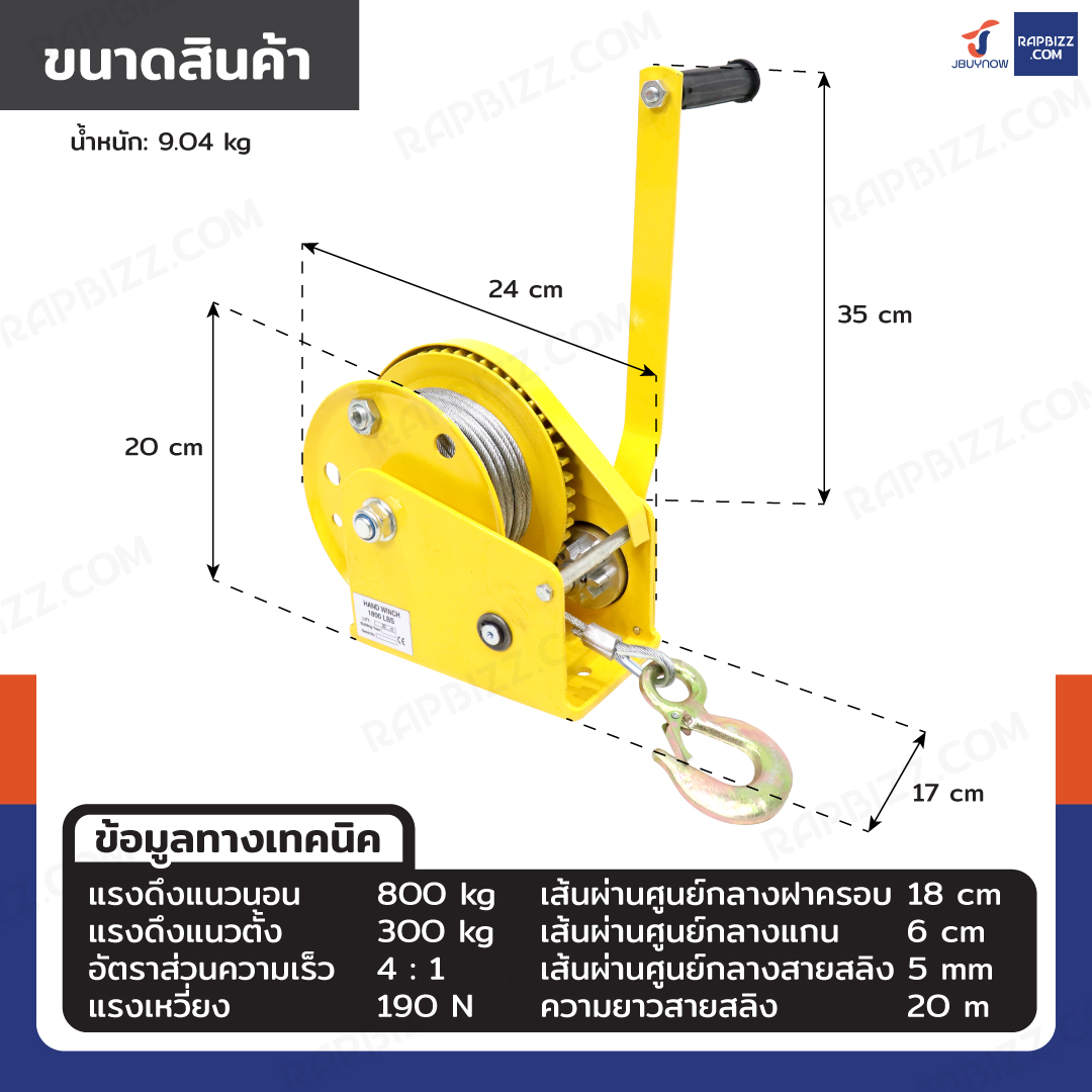 รอกมือ รอกสลิงมือโยก 1800LB (800 kg.) สลิง 5 mm ยาว 20 M