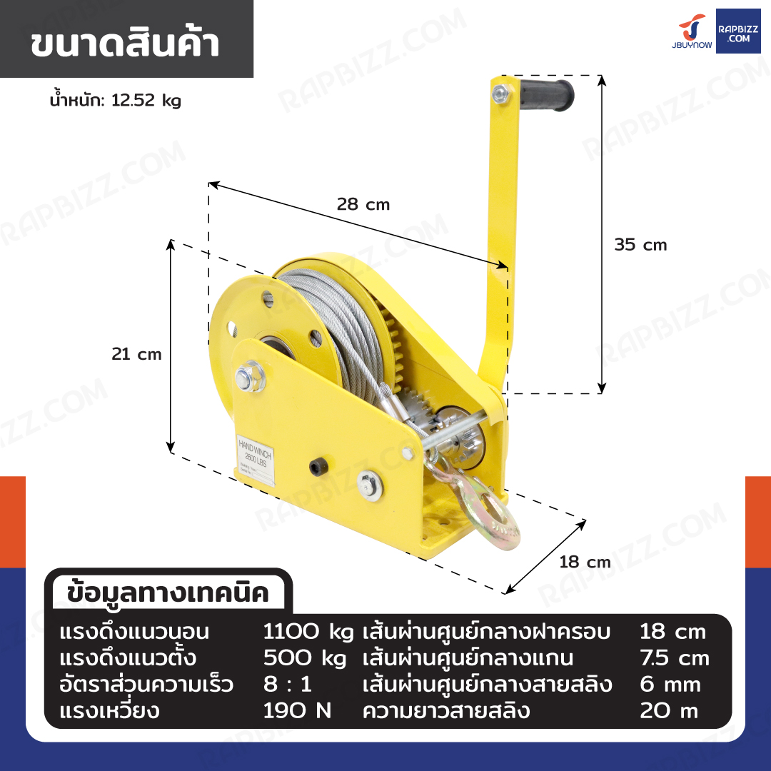 รอกมือ รอกสลิงมือโยก 2600LB (1100 kg.) รุ่นแบริ่ง สลิง 6 mm ยาว 20 M